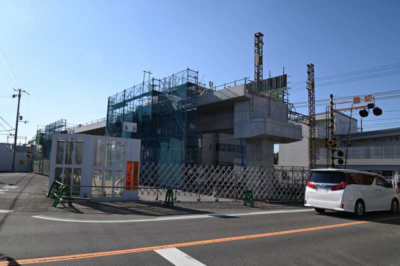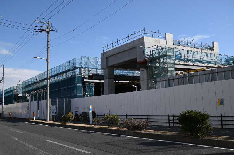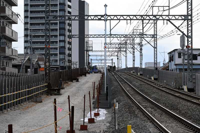 こんにちは。こんばんは。 浜寺公園駅の2月の様子をレポートします。 1枚目は浜寺公園2踏切から和歌山側です。 線路との境界にフェンスが設置され始めています。あと一部ですが架線柱も短くなっています。 重機もあるので盛土を崩す段取りも進んでいるようです。 2枚目は浜寺公園1踏切から和歌山側です。今回は側道からの撮影です。 元線路との境界にあったブロック塀がなくなっています。近々別にフェンスを立てると思います。 あと、先月レポートした浜寺公園2踏切付近にはブロック塀はまだ残っています。 3枚目は旧店舗跡です。 新EVと旧ホームの間に機械があります。掘削の準備をしていると思います。 4枚目は旧店舗跡から難波側です。 再び水路部が開削されています。蓋を強化しているようにも見えます。 あと旧ホームの解体も、屋根のあるところまで進んだようです。 5枚目は諏訪ノ森4踏切と阪堺線の間です。 引き続き高架橋間の桁工事を始めています。現在は足場と型枠が確認できます。 今月は以上です。来月も引き続きレポートします。