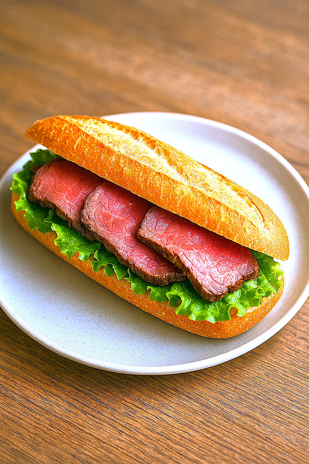 香ばしいフランスパンに、しっとりジューシーな近江牛ローストビーフ。