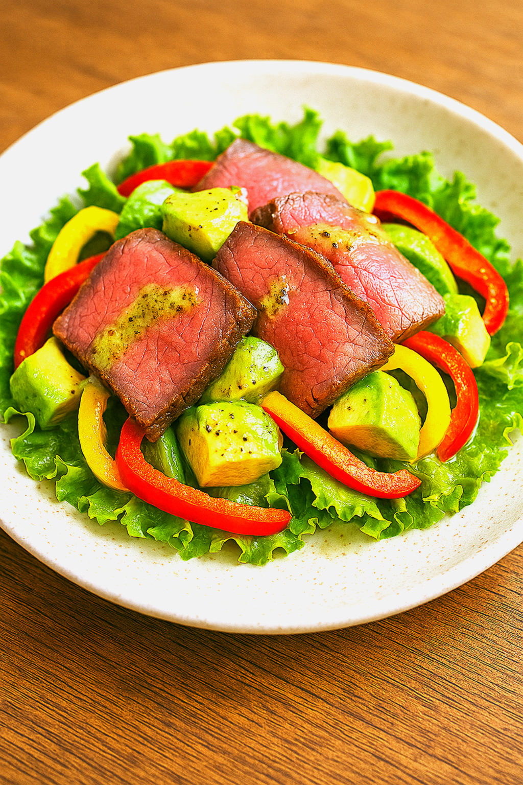 ② 盛るだけ!彩り豊か「ローストビーフとアボカドのサラダ」