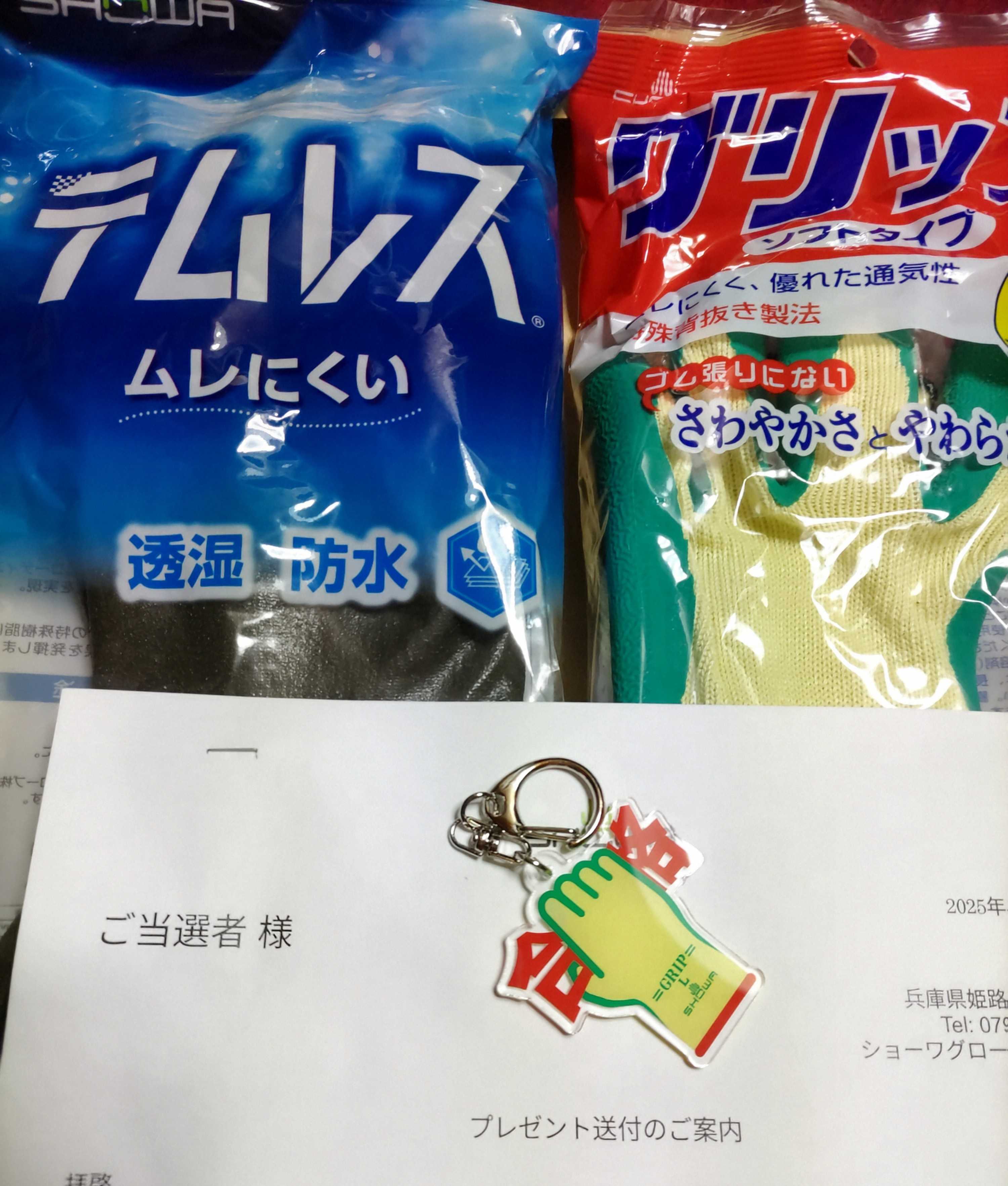 「合格キーホルダー」と「手袋」をもらっちゃいました。