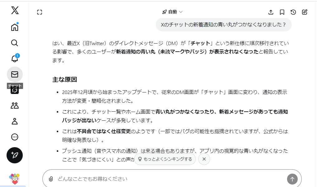 上のベルには青丸はつくのですが下のメッセージはチャットの中に入らないとわかりません。