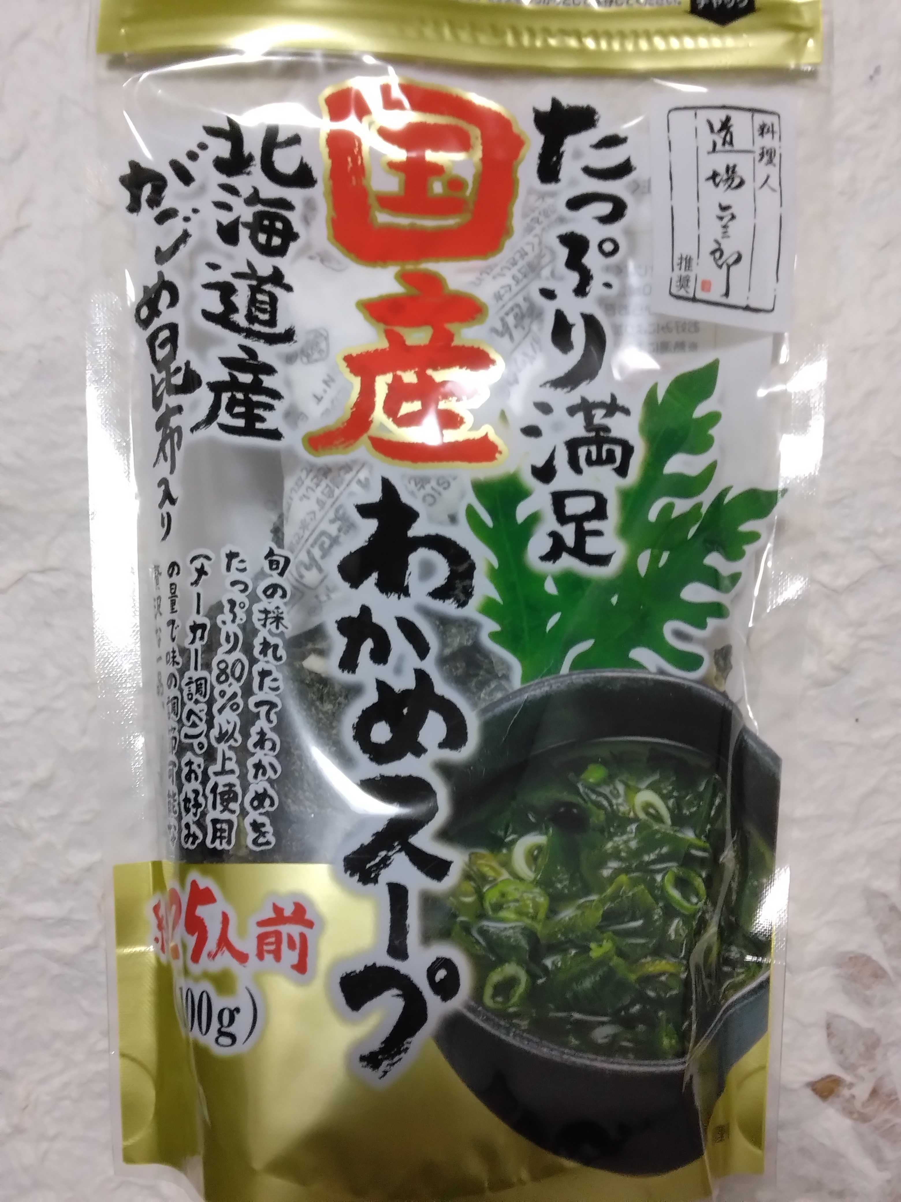 ユーラスのたっぷり満足国産わかめスープを買ってきましたスプーン1杯分を器に入れてお湯を注ぎましたお湯を入れるだけなので簡単で美味しかったです
