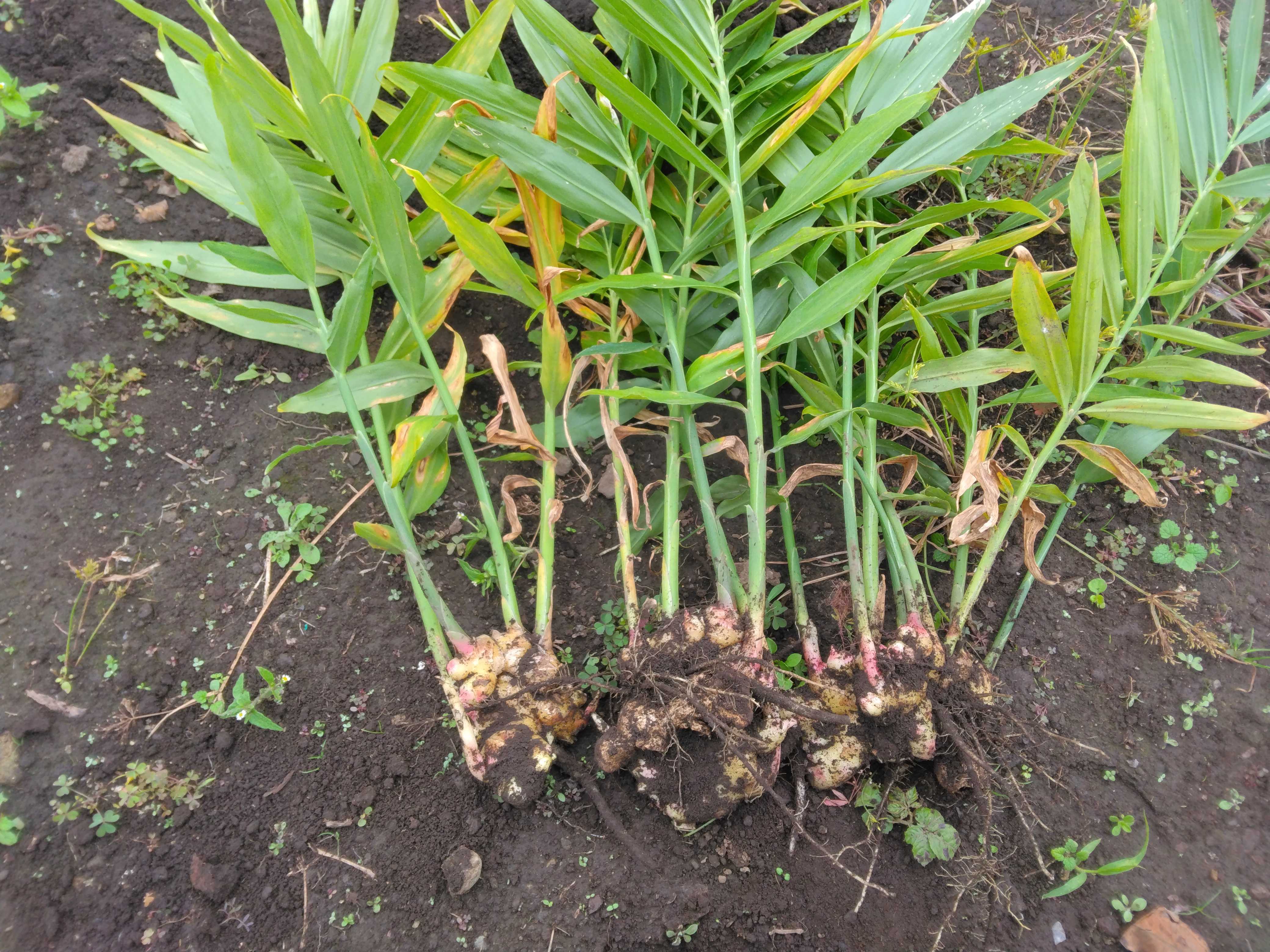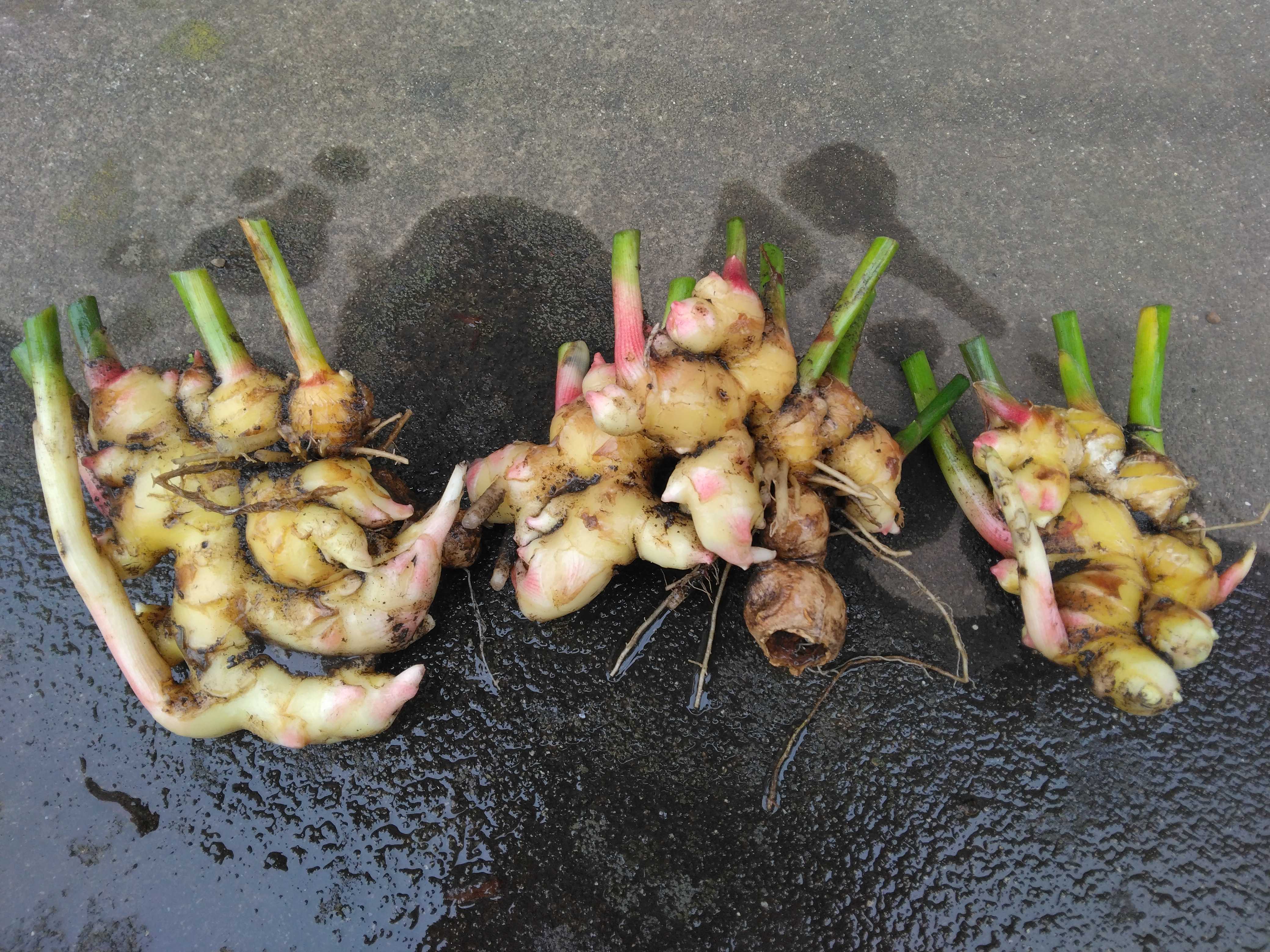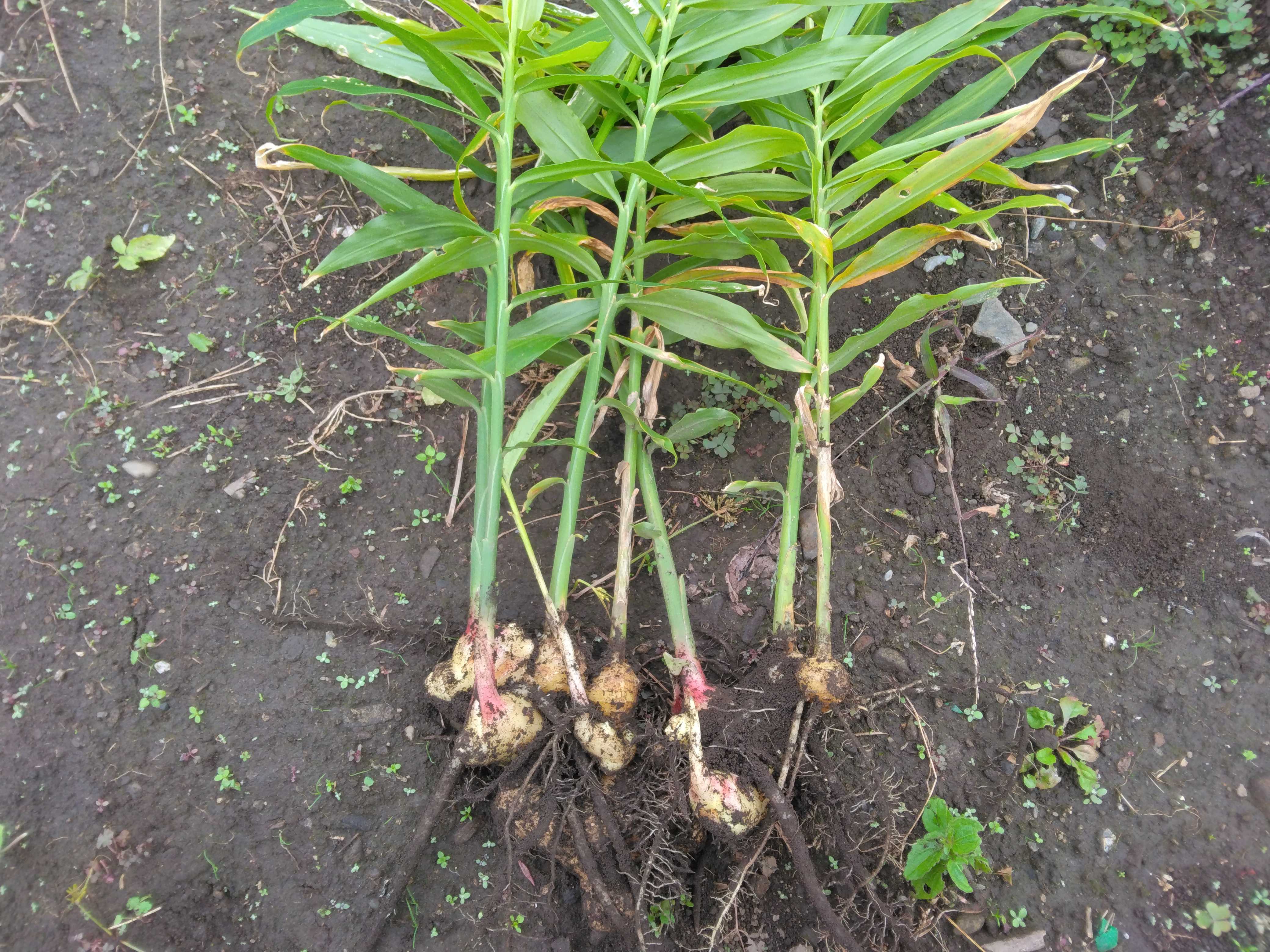 しょうがの葉が枯れ始めたので少しだけ収穫してみました 小しょうが(三州) 大しょうが(お多福)