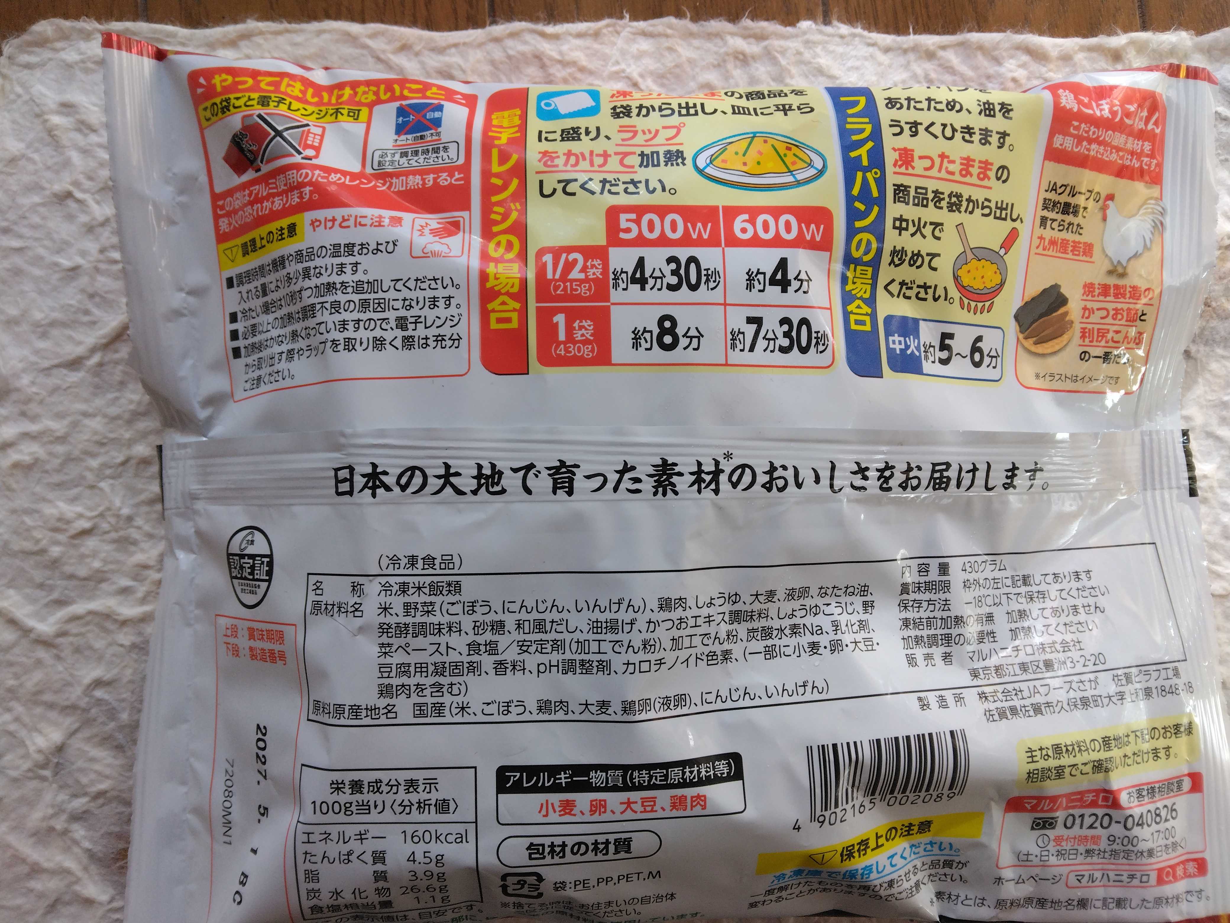 [冷凍] マルハニチロ 鶏ごぼうごはん 430g 価格:525円(税込、送料別) (2025/12/6時点)
