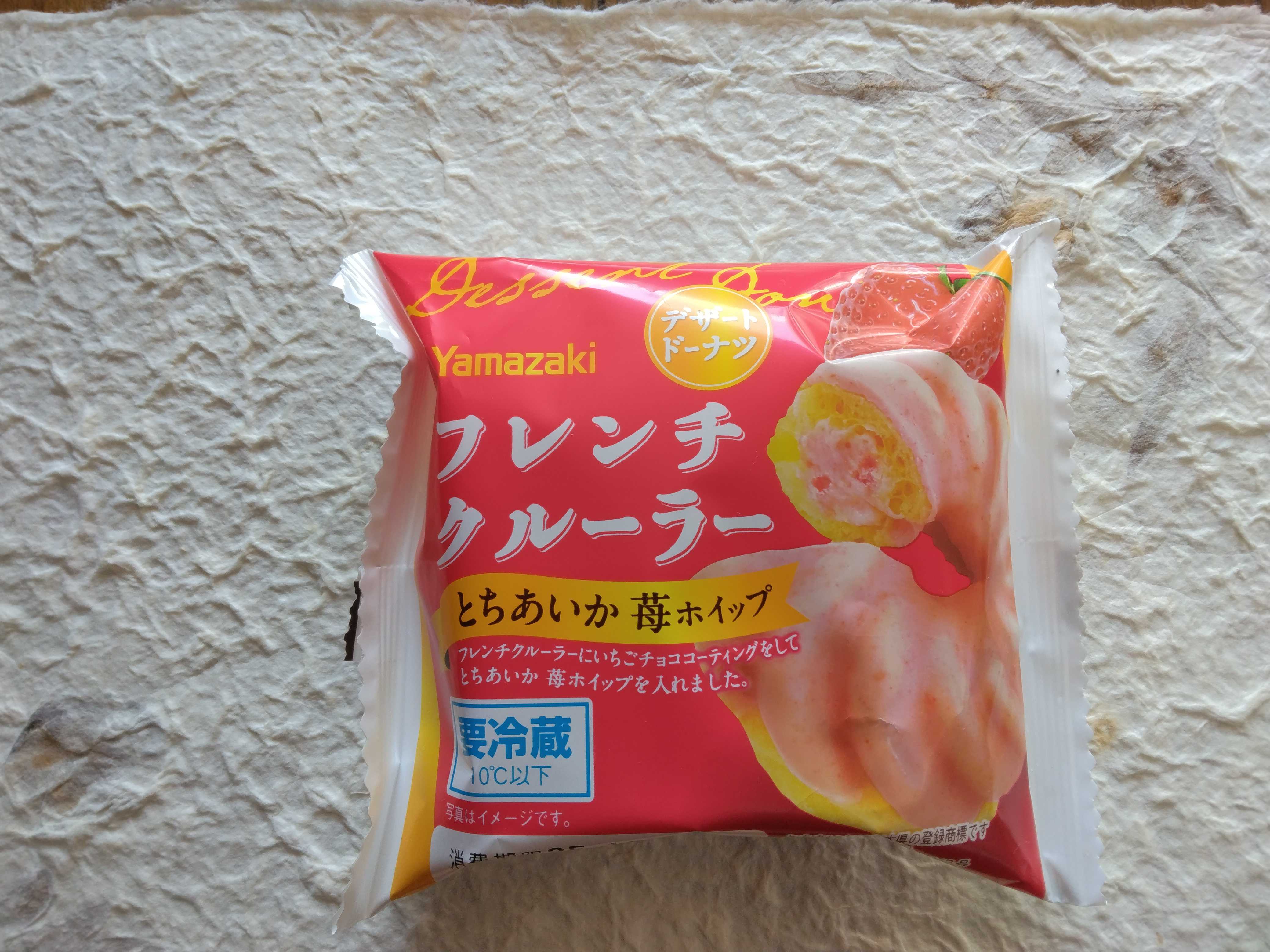ヤマザキのフレンチクルーラーとちあいか苺ホイップを買ってきました 苺の酸味があるホイップクリームが入っていて美味しかったです