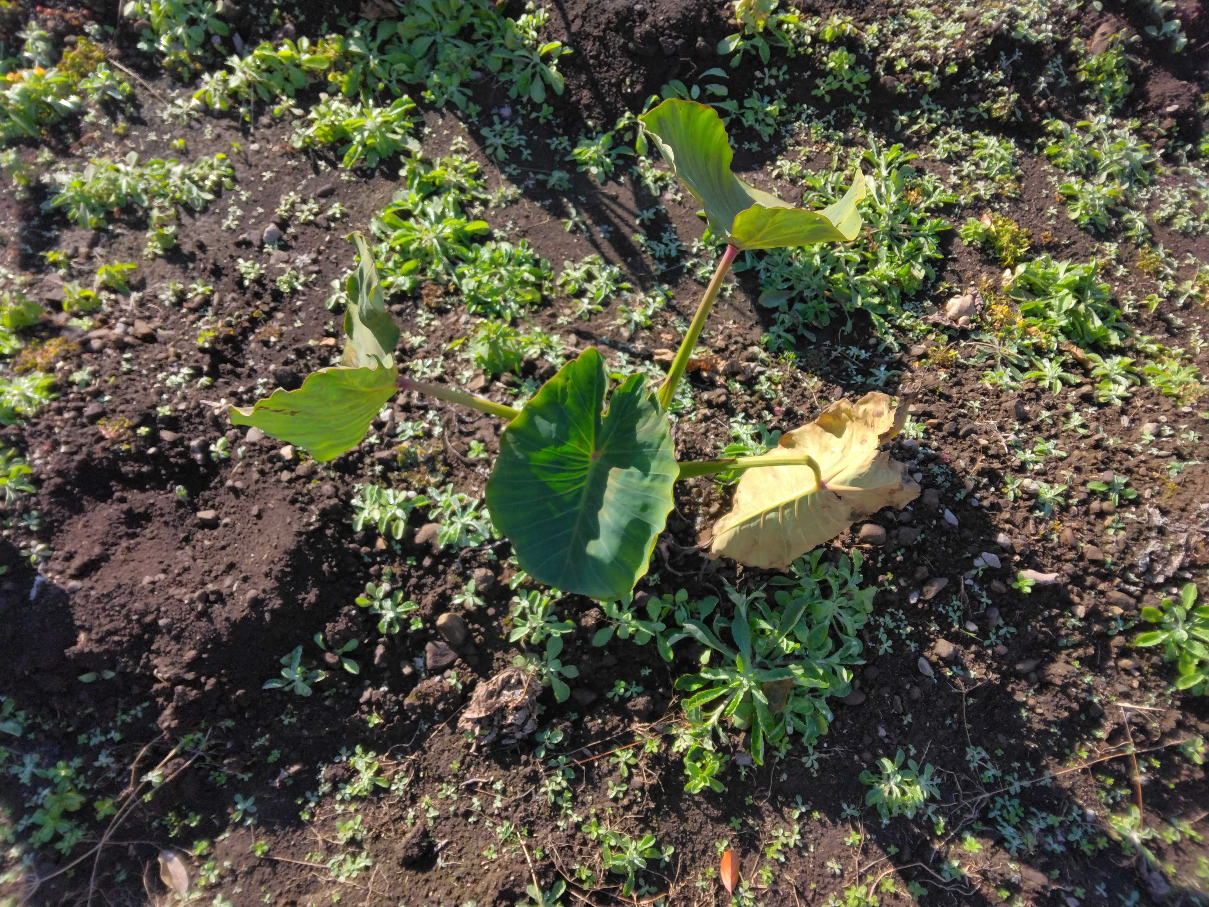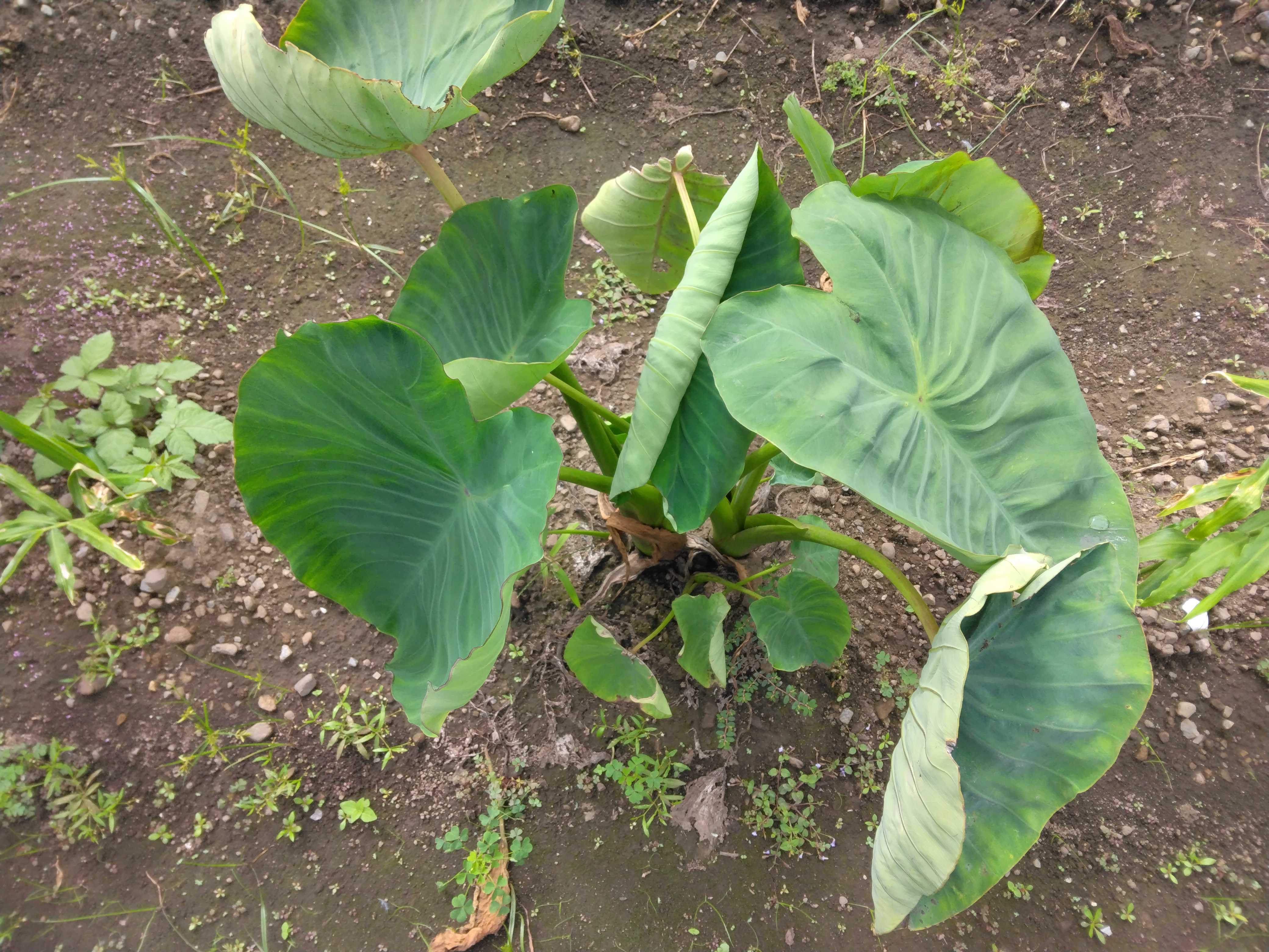 里芋の葉が少し枯れてきていたので1株収穫してみました少し小さめでしたが芋は出来ていて良かったです