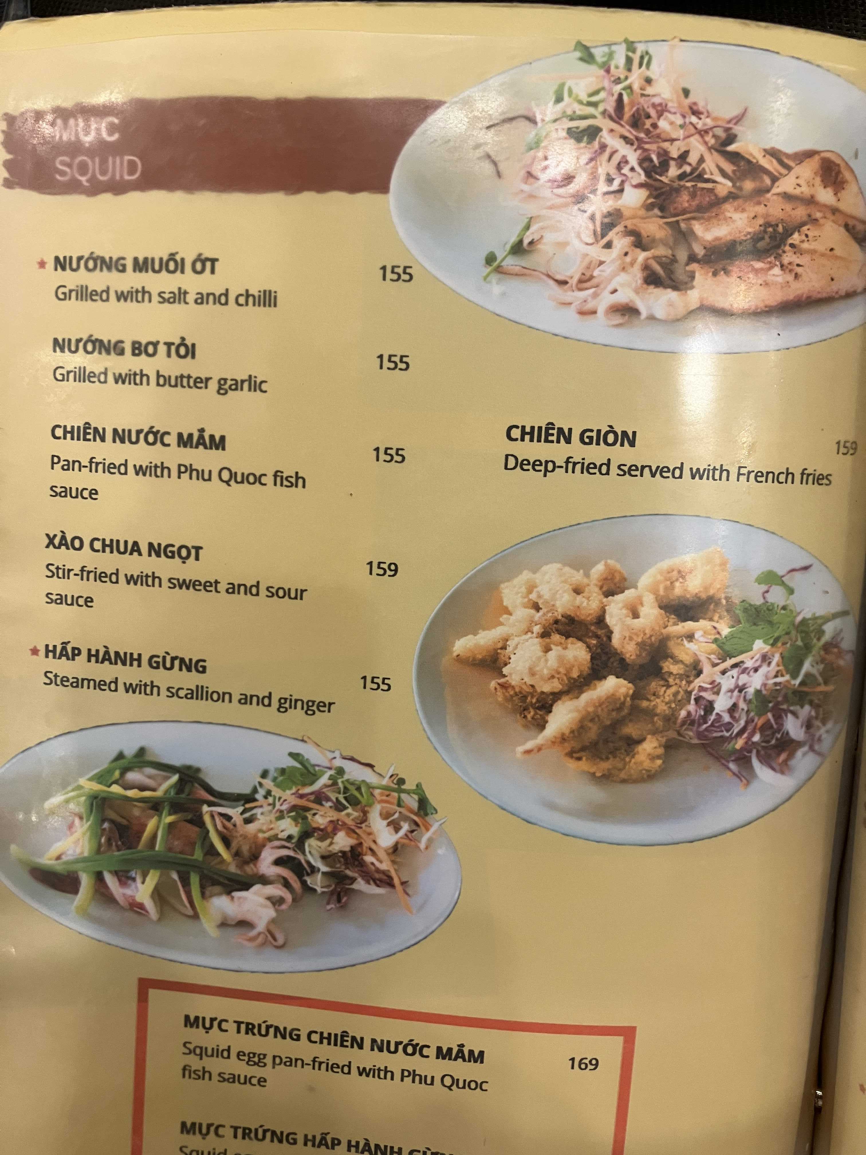 値段は観光客向け?で高めです。フーコック島では烏賊が美味しいと教えてもらったので、イカ焼きをいただきました。一人旅の食事、食べたい料理の品数が注文できないのが、いつも忸怩たる思いです。牡蠣を注文したので、海老は断念です。