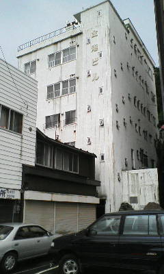 旧室蘭駅正面の石垣を背に古くから建っている産業会館ビル、そのすぐ横の金港ビル。
