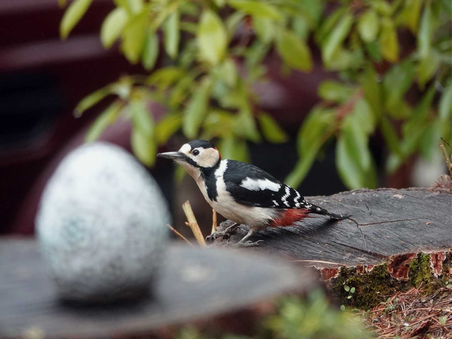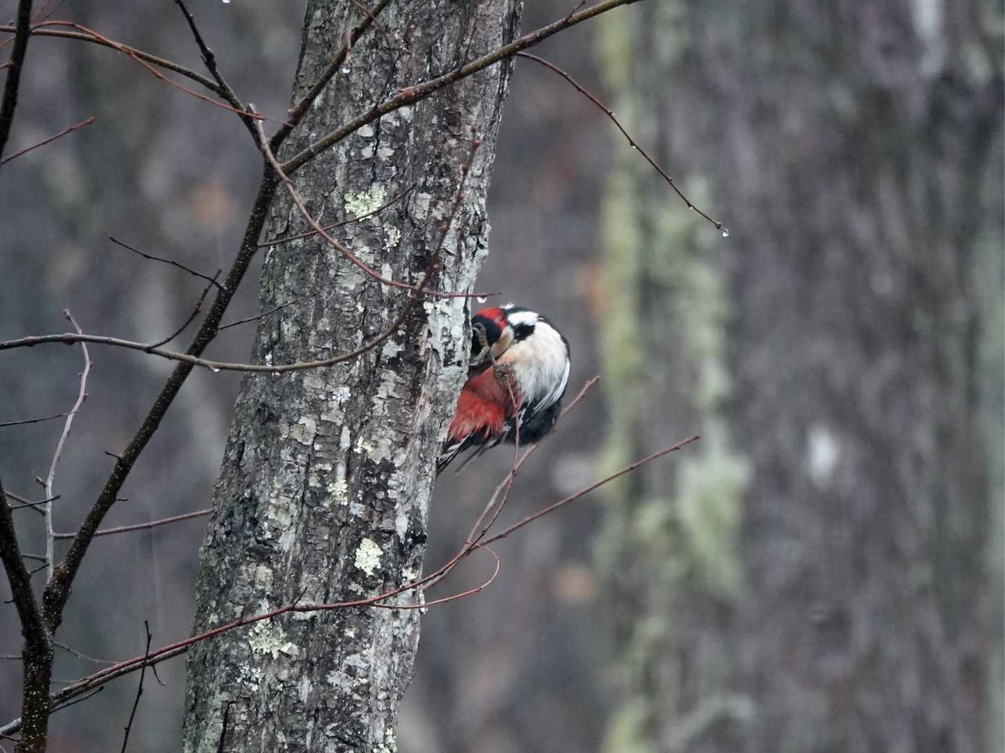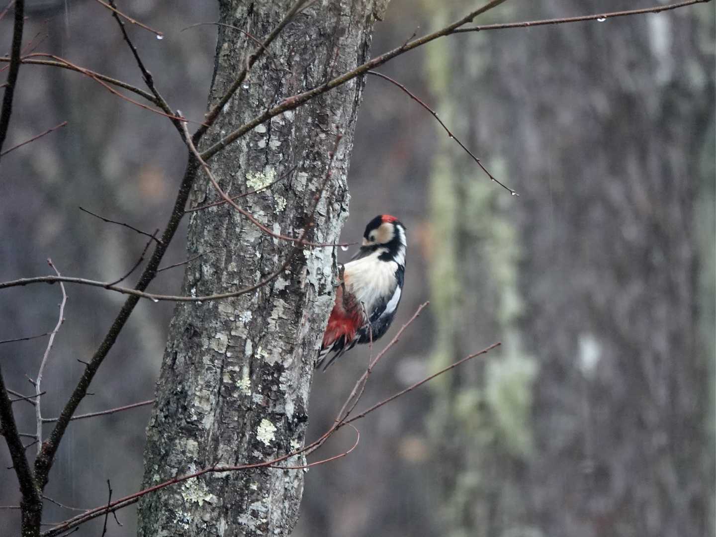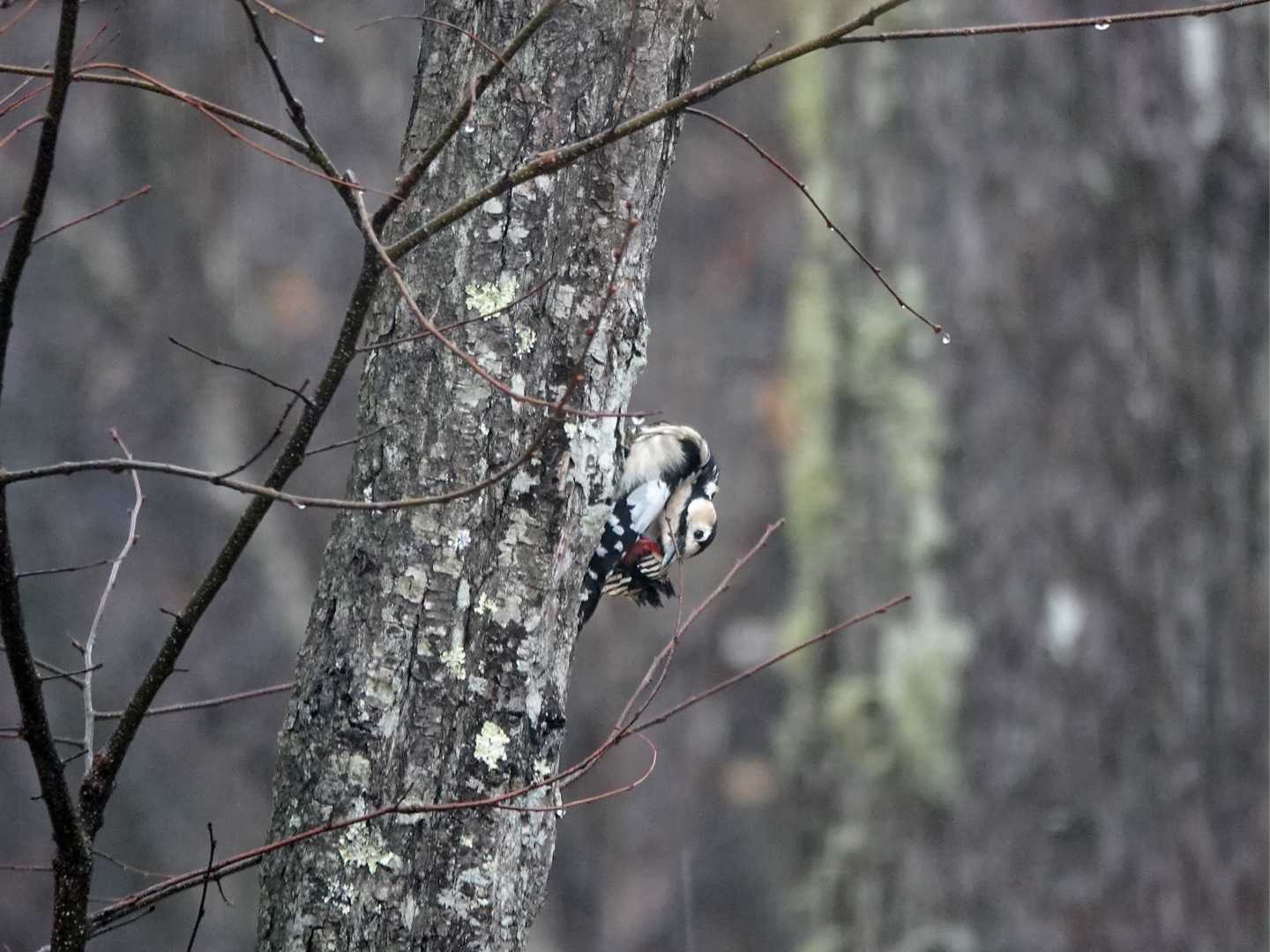 雨の中のアカゲラ。毛づくろい、体を曲げて。#野鳥 #アカゲラ #毛づくろい