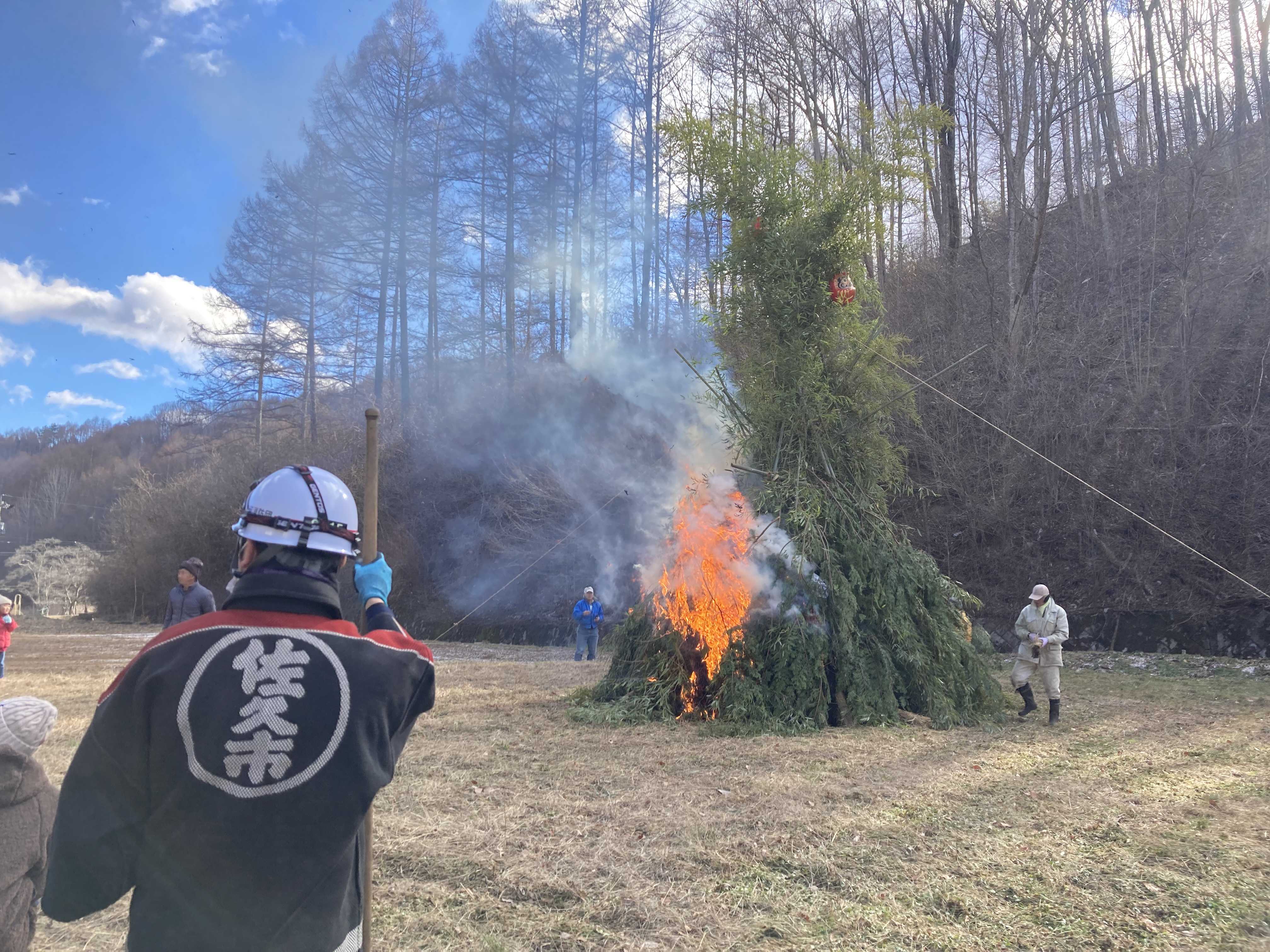 今日は七草粥です。朝降った雪の結晶です。そしてドンド焼き、そこで貰ったドブロクが最高でしたー