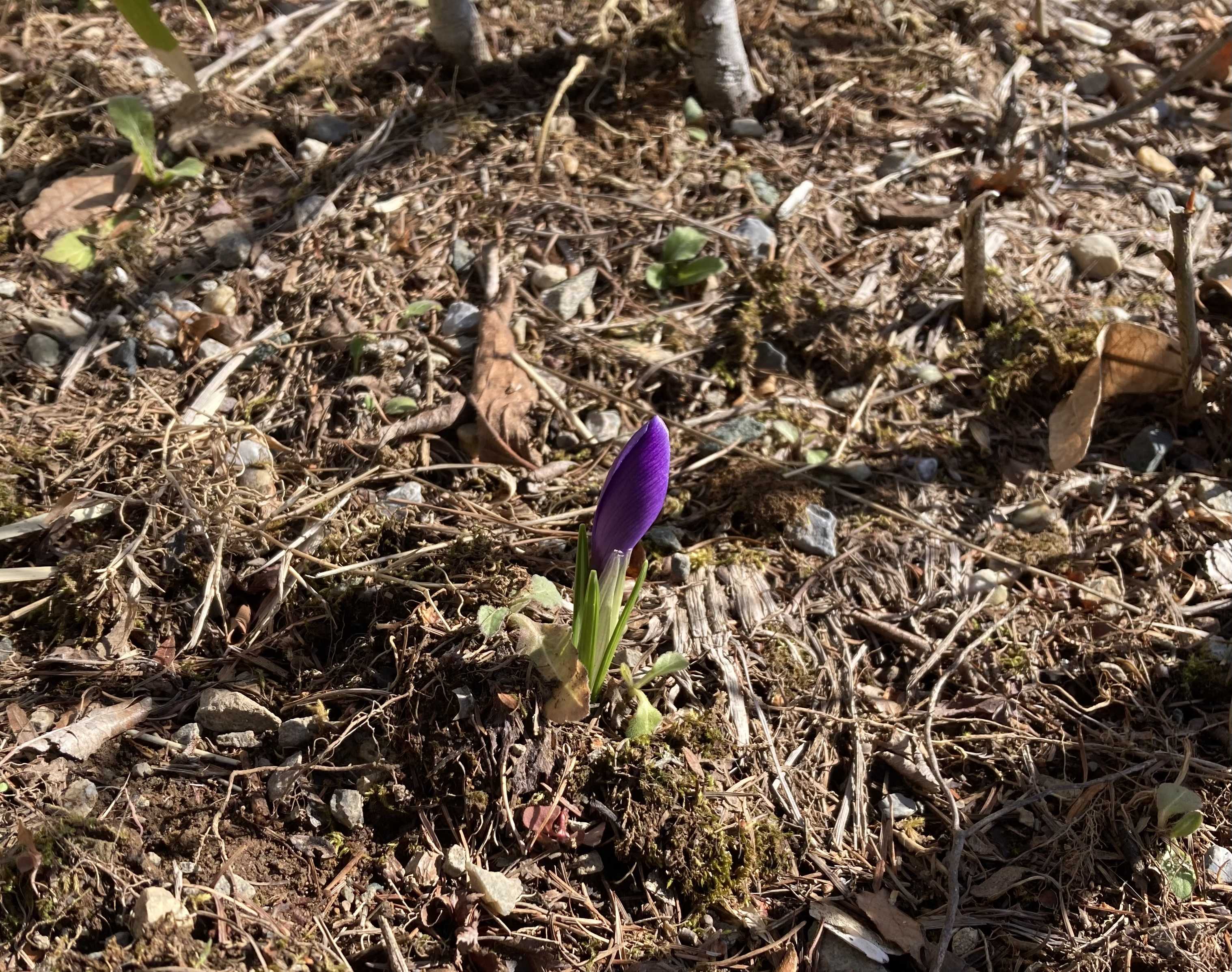 植えた覚えのないクロッカスが出てきた。エサの取れない冬の間だけエサをやっている鳥の恩返し?と思うことにする(クロッカスはタネもできるそうなので)