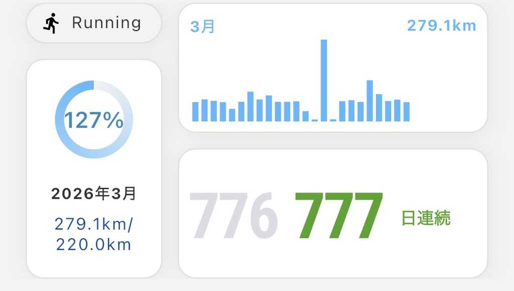 3月も今日で終わりです。そして、2025年度も終わります。年度末ということで、いつもそうですが何となく慌ただしい日々が続きます。こういう時は、やることを明確にしておくことと、優先順位をつけて整理しておくことで、抜け漏れなく対応できます。仕事は、4月以降に向けて色々と準備をしました。間もなくやってくる日々に向けて、頭を使い、足を使い、準備を進めました。まだやることがたくさんありますので、一つずつ確実に対応していきたいと思います。こうすれば、怖いものはありません。プライベートでは、今月も多くの方にお会いすることができました。いつもの通り、会いたい人に会いに行く、を実践して、色々な方にお会いできて嬉しかったです。常に思いますが、1人では生きていくことができません。多くの方に支えていただいて自分がある、ということを実感する1ヶ月でした。マラソンは、シーズン最後の月となりました。今月は、なんといってもソウルで7年振りのサブ345が大きな出来事でした。最近では、サブ345を「サブリノ」と呼ぶそうです。ソウルではいつ以来のサブリノか分からず、帰国して確認してやっと分かったという状況でした。また、ソウルはツアーで行きましたが、新たなランナーの皆さまとの出会いもあり、とても素晴らしい時間を過ごすことができました。このご縁は、今後も大切にしていきたいと思います。今月の走行距離は、316.1kmでした。故障もあって最後の方はウォーキング+ジョグになりましたが、3月としては過去最長距離になりました。ソウルの後にもっとゆっくりリカバリーをするべきでした。年齢的に故障のリスクが高くなってきましたので、反省点として今後に活かしたいと思います。気がつけば、明日が誕生日です。そのため、今日が50代最後の日になります。特別なことは何もありませんし、特別な感情も何もありません。思い出してみると、40代最後の日は、しみじみとビールでも飲んでいたと思います。あれから10年、当時よりは少し成長したと思います。また明日からも淡々と頑張っていきたいと思います。