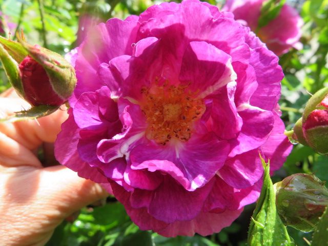 本日でブログ開始2週間 皆様のご訪問のおかげで、励みになり続いております。 有難うございます ド素人ですがこれからも頑張って、更新させていただきます よろしくお願いいたします。 ******今日は、朝から、孫2人の預かりの日です! 早めに起き、庭仕事をこなそうと階下に降り、日課の愉快な仲間たちのご飯タイム まず、ウサギのチョコ、小鳥のサリーにごあいさつ、隣にいる5年飼っている金魚 15㎝にはなる、孫と一緒に縁日で釣った1匹・・・水鉢のどこを探してもいない え~~~~ アンティークのミシン台の上にある水鉢の下を見ると、 いきおい余って飛び出してしまったのでしょう・・・ すでに死んでしまっていました 昨晩、水の補充をしてフィルターを変えました!きっと水が多すぎたのだと思います。 ![]() いつも一緒にいられる、庭の片隅に・・・・ 悲しい気持ちを引きずりながら、孫たちを連れ、予定していた遊園地に! 土曜日のせいか、家族ずれで混み気味でしたが 久しぶりに、孫といろんな乗り物に ジェットコースターには大興奮 コンテナ屋台で焼きそば、ラーメン、フランクフルト、たこ焼き、ポテト 童心に帰り楽しいひと時が過ごせました。 悲しい朝の出来事も 少し和らぎました 孫たちに感謝です! 夕飯には、お嫁ちゃんがお礼に手土産でくれた、ワインとチーズで主人と乾杯 ![]() ***昨日、先日買ったガーデン雑貨の鳥かごをシャビーに・・・ いつものように水性塗料と、キッチンペーパー 味気もそっけもない真新しい鳥かごたちが・・・ ![]() はい! 少し深見が出て使い込んだ感じに ![]() ***白い方は、多肉植物の寄せ植えを入れて! 780円には見えないでしょ? ![]() 甘くておいし~い木苺がいっぱいなります ![]() とってもかわいい ![]() ![]() ![]() ![]() ![]() ![]() 12センチ~13センチはある巨大輪!見事 ![]() ***最後に、我が家で出た枝変わりのバラ発見 ![]() グリーンの花弁にピンクの斑が入っています! 毎年、もの枝だけに斑が入ります(^^)こういう日々の ささいな、発見がとっても嬉しく、幸せです まだまだいっぱい開花はしていますが紹介しきれず、ごめんなさい! 又明日も、いろんな発見、日々訪れる出来事を綴っていきます。 それでは、また明日お会いできることを楽しみに 花・ガーデニングランキング