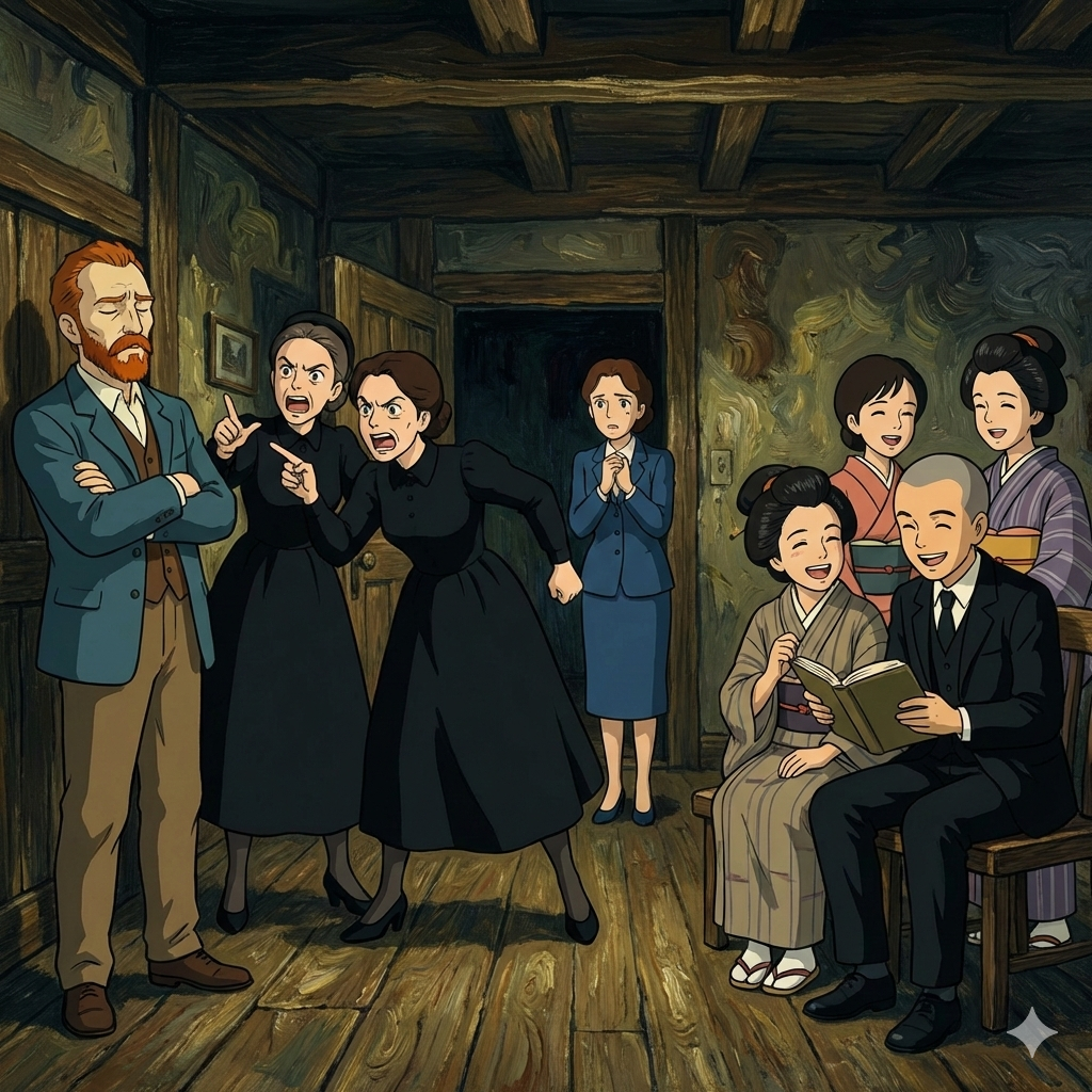 ・ゴッホの2人の妹は黒い喪服を着てゴッホを激しく非難している