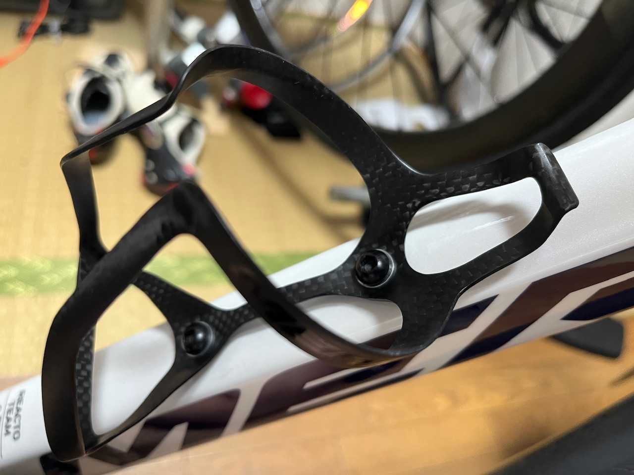 「高剛性に負けて乗りこなせなかったら、どうしよう・・・。」 なんて思っていたのですが、杞憂でした。 緩斜面は、エアロの効果なのか、いつもよりスピードが出ている感じがありました。 急斜面は、さすがにTIME ALPE D'HUEZよりちょっと重いので重さは感じますが、それでも60mmのVision Metron 60 SLの影響も大きいのかもしれません。(公称1480g) 疲れも、ほかのロードバイクと特に大きく変わった様子はありませんでした。 エアロバイクですが、結構登りますよ。剛性は高いですが、バランスがとられています。 乗り心地もハードではありますが、気になるほどではありません。 ただ、TIME ALPE D'HUEZのほうが乗り心地は優秀だと思います。 小生みたいなサンデーライダーでは、オーバースペックですが、剛脚な人なら、結構なスピードで登れると思いますよ。 下り基調の帰りは、エアロ効果でスピードがいつも以上にでていることを感じました。 ![]() ![]() あ、そうそう帰りにショッキングな出来事が・・・。 工事路面のバンプにはねてその瞬間にチェーンがクランクの内側でなく、外側に外れるレアなトラブルが・・・。 ほぼ新品のデュラエースのクランクが傷ついて(´;ω;`) クランクと靴が擦れる部分に保護シールを貼っていたのですが、そこでないところに傷が・・・。 かえってコンパウンドで磨いたら、目立たない程度になったので良しとします。 FDの調整が若干甘かったみたいなので、調整しなおしました。 ![]() それから付属のメリダ製ボトルケージ。 軽量でいいんですが、頼りなく感じたと、取付穴が〇で調整幅がなく、上下に動かすことができず、ダウンチューブ側のボトルとシートチューブのボトルの角が干渉することがありました。 かなり軽量で、普通に使う分には脱着も楽で問題ない製品でとりあえず予備にとっておきます。 そこで、TIME ALPE D'HUEZにも使っているエリートのボトルケージROCKOに換えました。 しっかりしているのはもちろんのこと、最初は固いですが、使っていくうちにこなれてきて、横にボトルを出すこともスムーズにできるのでお気に入りです。 走行中、ボトルがぶっ飛んでいくようなことは今までないですね。 ![]() ![]() エリート ELITE ROCKO(ロッコ) ケージ(コンポジットカーボン) 自転車 ボトルケージ お気に入りの記事を「いいね!」で応援しよう