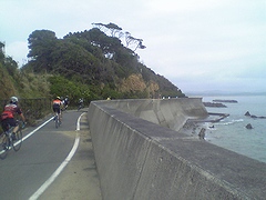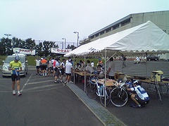 ![]() 〔開会式前の様子〕 開会式で主催・来賓のあいさつと、若干の説明があった後、 「では、120kmの人から順次スタートしてくださ~い!」 ・・・。タイム差スタートでもなく、号砲も無い。 さすが、“のんびり走ろう”飛ばしません。順位も無いしね。 スタートしてしばらくはR260を走り、 いったん英虞湾の登茂山展望台という岬まで行って折り返し。ここで12km。 風光明媚なところで写真を撮ろうと思っていたのに、 スタート直後でけっこう飛ばしてきたので、差を詰められたくない!と思って、 急いで引き返してしまった。(飛ばしません、なのに。。。) 途中、一瞬だけ海岸沿いの自転車道を走って、1つ目の給水ポイントに着いた。 ここで24km。ちょっとだけ休んで出発。まだパールロードには入らない。 ![]() 〔海岸沿いの大王自転車道〕 4年前に参加した時とコースが変わっている?らしく、 それでも、交通量の少ない快適な道を走って行くと、ようやくパールロードにぶつかった。 的矢展望台CP(チェックポイント)。ここでメータは40kmを超えている。 65km参加の人はここで折り返し、あと25kmだ。 ![]() 〔的矢展望台CPにて〕 90km、120km参加の人は、ここからが本番。パールロードを走り始める。 なんというか・・・登り、下り、登り・・・の繰り返し。 始めのうちは威勢がよかったが、だんだん、登りでスピードが出なくなってくる(1ケタ台とか)。 でも、長い下りだと、60km/h近くスピードが出て、かなり爽快だった。 ![]() 〔オモシロ展望台?なんて読むんだろ?〕 90kmの折り返し地点、鳥羽展望台CPで55kmぐらい(たしか)。 的矢CP10kmぐらいしか走ってないので、ここでの休憩はパスして先を急ぐ。 ここから鳥羽に向けては下り気味のアップダウン。 長い坂を下るのも“気持ちイー!”と言うよりも、“またここを登るの?トホー”という感じ。 かなり凹んできた。 パールロードを下りきって鳥羽市内に入り、しばらく走っていると(これが長く感じた!) 折り返し地点の鳥羽市体育館に到着。70kmぐらい。 給水所のバナナとクッキーとドリンクで休憩をとってから、さっさと復路に向かう。 4年前に参加した時は、ここで休憩し過ぎてつらかったような記憶が・・・。 鳥羽展望台CPまでの登りは・・・つらかったです。 メータが1ケタ台、下りでも30km/h出なくなってしまったよ。 ようやく鳥羽展望台CPに到着。85km、ちょうど12時くらい。 昼食は、、、「てこねずし」でした。昨日も食ったやん! ![]() 〔てこねずし弁当、そしてサイクリングと言えばやっぱり(^^;〕 --- 眠うなってきた。。。(つづく) お気に入りの記事を「いいね!」で応援しよう