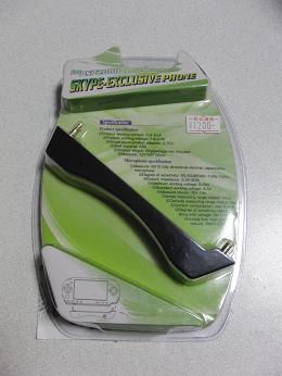 PSP2000でスカイプをするのにはヘッドセットを付ける必要があります。コード式なので線がからむので面倒なんだよね梅田のラジオショックに行くと…http://www.radioshock.jp/おおっ線がないのでからまない付けてみるとこんな感じマイクとスピーカーが付いているのでそのまま顔に当てて使う使ってみると…いい感じだ!おすすめです。PSP本体のUSB端子に接続して使用するマイクロホンPSP用 PSPJ-15014マイクロホンSINGLEPACK/シングルパックSkypeスカイププレイステーションポータブル/PSP,PSPソフト,PSP用,プレイステーションポータブル,PlayStationPortable,ソフト,PSP用,PSPJ-15014,マイクロホン,SINGLEPACK,SINGLE,PACK,シングルパック,Skype,スカイプPSP本体のUSB端子に接続して使用するマイクロホンPSP用 PSPJ-15015マイクロホンTWIN PACK/ツインパックSkypeスカイププレイステーションポータブル/PSP,PSPソフト,PSP用,プレイステーションポータブル,PlayStationPortable,ソフト,PSP用,PSPJ-15015,マイクロホン,TWINPACK,TWIN,PACK,ツイン,ツインパック,Skype,スカイプ【D端子ケーブル付き】ソニーPSP「プレイステーション・ポータブル」(ピアノ・ブラック) PSP-3000PB PSPホンタイ [PSP3000PB]【返品種別B】【お一人様一台限り】