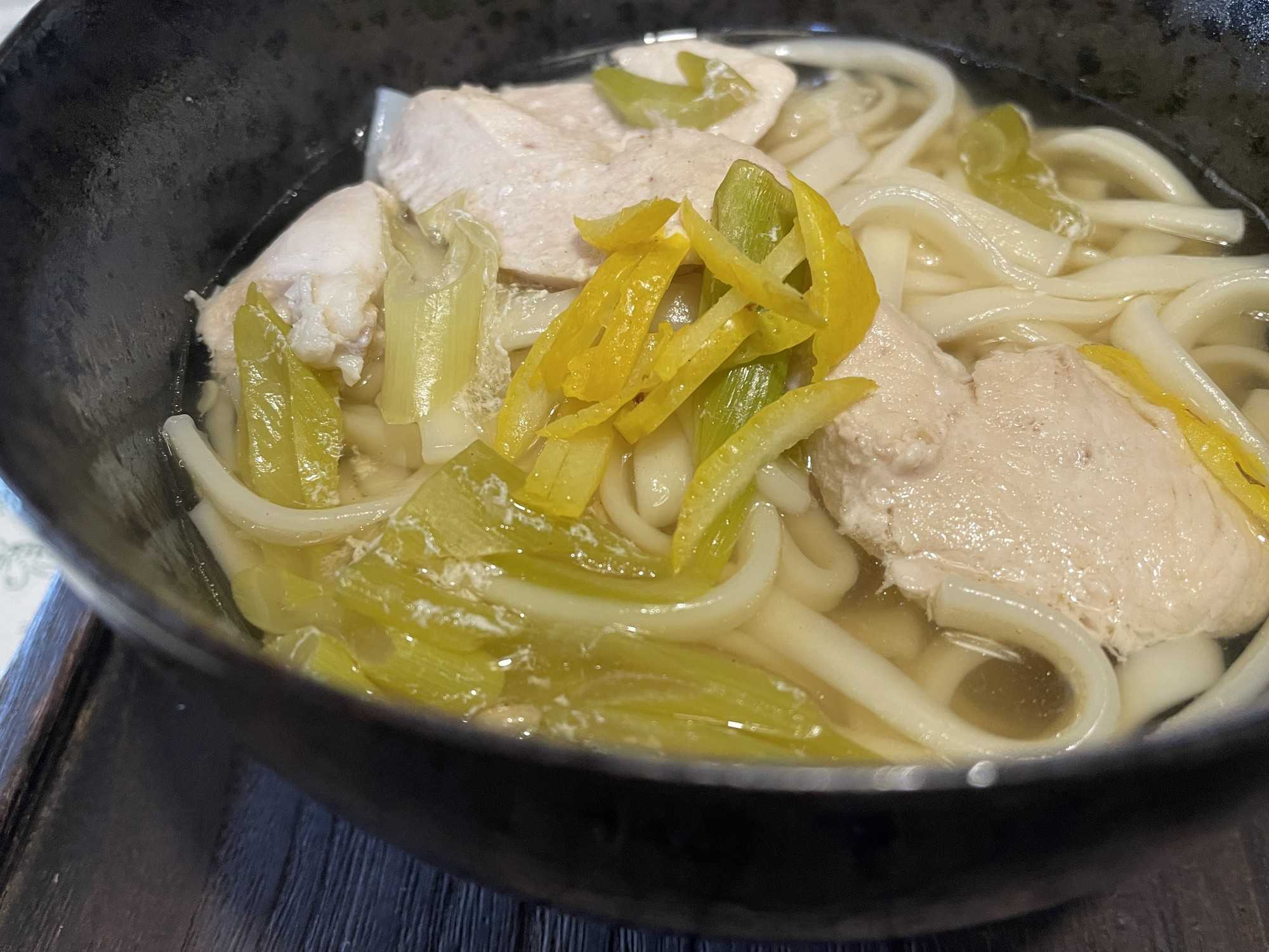 ただし、家にある調味料でやったので自分なりのものになりましたが、いやぁこれ旨いです。 ![]() 鶏むね肉をスライスしたものと長ネギをシマヤやヒガシマルなどの粉末うどんスープの規定量に溶かしたもので煮ます。あくが出たらすくってくださいね。 ![]() さきほどのつゆに柚子1/2分の果汁(2人前で)を加え茹でたうどんを入れます。トッピングに柚子の皮を千切りにしたものを乗せたら完成です。 柚子の果汁の酸味が良い仕事しますね。こんなにうまいとは想像できませんでした。 ちなみに山梨のビミサンを使って同じようにしてソーメンにしたのですが、やはり関西系のつゆのほうがピッタリ来ました。 お気に入りの記事を「いいね!」で応援しよう