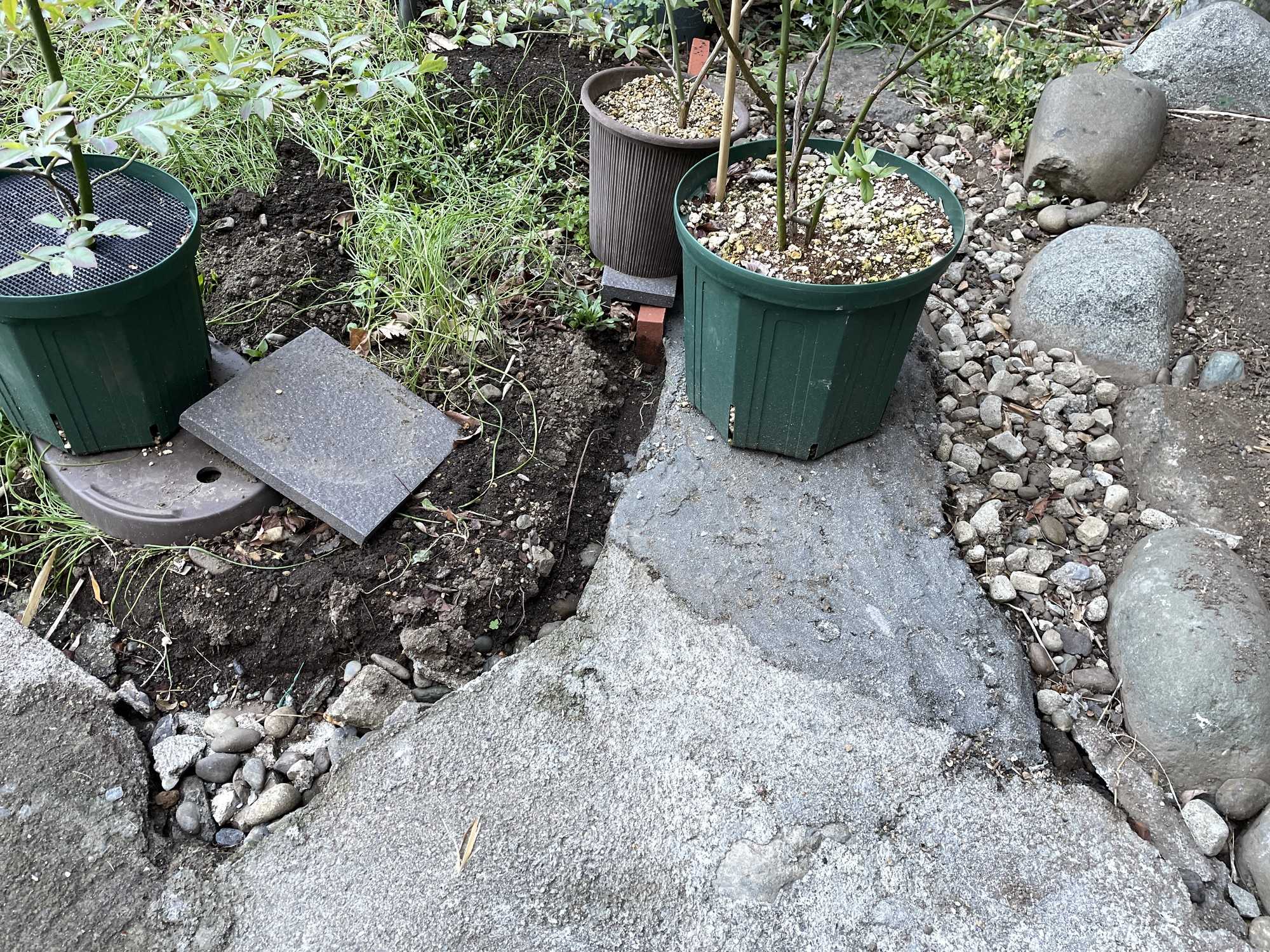 ブルーベリーの鉢が増えたり大きくなってきたので菜園花壇の隅に置いてあったのですが、ちょっとかわいそう。だったらちょっと頑張ってソナタ利を作り直そうかと。まずは手持ちの砂があった分だけコンクリートを打ちました。花壇の縁のレンガも設置しなおしです。ようやく下地が出来ました。砂利が入っていないモルタルですから結構砂を使いました。仕上げ塗完了です。部分部分で見るといいのですが、数回に分けてコンクリートを打っているのでつぎはぎで色が違うんですよね。ひとえに使っている砂のせいです。置き場の完成です。本来は建物の裏に回る通路だったのですが、ほとんど使わないので鉢を置くなら問題ないし日当たりもいいからというわけです。ただ、夏になると太陽方向にオクラを栽培するのでちょっと日陰っぽくなるかなぁ。まぁ太陽が高くなるから大丈夫とは思いますが。ポチっと応援よろしくお願いします。↓にほんブログ村