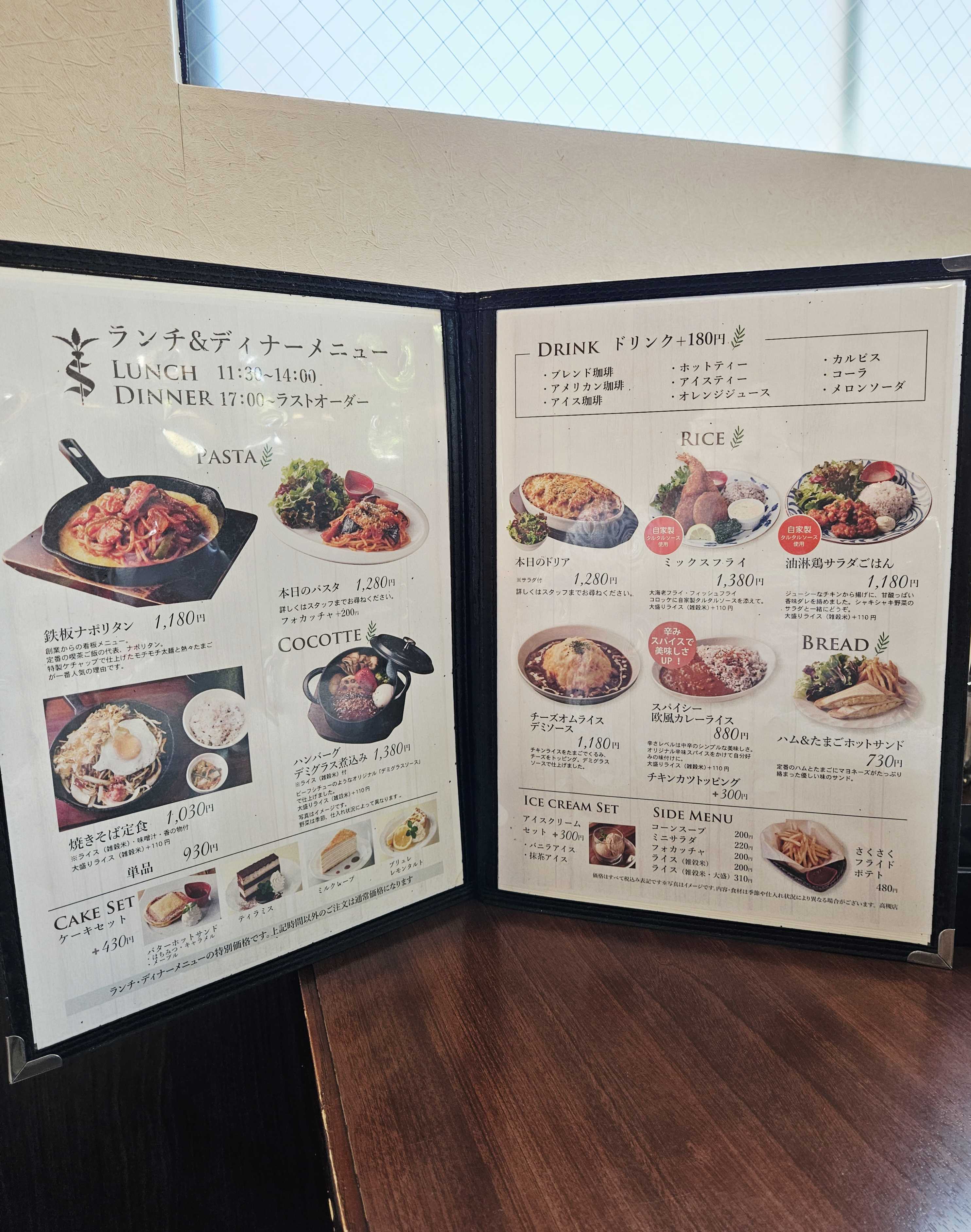 相談したり、頼りになる友達とランチ ◎鉄板ナポリタン ◎油淋鶏サラダご飯 お互い定番のメニューがコレ! 食後のコーヒー☕ 抹茶アイスクリーム🍨 メニューはこんな感じ 店内はゆっくりできる空間 ソファーも座り心地よく ついつい長居してしまいます😅