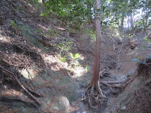 年末から正月まで暖かい冬でしたが 今日は寒冷前線のせいでメチャクチャ寒く覚悟の散歩です。 先週は椀貸池から西広見三等三角点経由で物見山へ行きました。 また今週も目的地は物見山です。 しかし今回はスタート地点が違って、里山サテライトと図根三角点を周回します。 あいち海上の森センターの駐車場に着いたときは いつもすごい車ですが、今日はやはり少なくて予想どうりです。 防寒の身支度をして出発。 ![]() あいち海上の森センター 17時閉門なので、どんなことがあってもそれまでには帰ってこなくてはいけません。 ![]() まず、五輪塔へ 謂れも何も無いので誰を祀っているのかわかりませんが 五輪塔は武士のお墓が多いので、祀られているのは武士かな? その後は緩やかな尾根を歩いて ![]() 五差路 ![]() 看板に歩いたルートに色を付けてみましたが わかりにくいですね 左下の愛知海上の森センターをスタートして赤いラインで五輪塔へ向かい 五差路から右の物見山への尾根ルートです。 ![]() この頃はまだ、ただ寒いだけでした。 ただ歩いていると体がだんだん温まってくるので 寒さも少しずつ感じなくなってきます。 ![]() 標識の物見山から少し行ったところが登山口です。 ![]() ここから尾根を歩きます。 マフラーをすっぽり頭から被っています。 ![]() ところどころ段差が出て来て、だんだん歩きにくくなります。 ![]() 尾根歩きですが、この辺りは壁に囲まれた溝状の登山道 ![]() えぐれて歩きにくいところもあります。 ![]() 急斜面をジグザグに登ります。 ![]() 登り切ったら、このルートで一番緩やかなところです。 ![]() 再び溝状の登山道 たたみ一畳くらいの大きな岩が鎮座しています。 ![]() 聖徳太子の古墳だと言われてるところ あと少しで山頂です。 ![]() 物見山山頂(327m) ![]() 山頂の奥の、石碑のように祀られている石の後ろの木に ぶら下がっている温度計を見たら ![]() 3.5度 風が強くて、先週より1℃低くて寒い 我らを追い越していった女性グループの姿が見えません。 山頂は寒いのでここではランチはやはりできませんね。 ![]() 名古屋駅前の方向が唯一開けています。 ![]() 名古屋駅前のビル群の向こうに 右は伊吹山、左は養老山地と霊仙山でしょうね 雪を被って寒そう 写真には写っていませんが、右奥 美濃の方向の雲は雪雲です。 きっと吹雪いているでしょうね。 ![]() 目の前の下を見たら、次に向かう里山サテライトの建物です。 ![]() ズームで 軒下に数人座っています。 あそこは温かそうです。 ![]() 山頂から同じ道を少し下って、登山道から20mほど外れて 支尾根のランチ場へ ここは風が遮られて暖かいひだまりで、ゆっくりランチが出来ます。 先週はここが見つけられず、仕方がないから別のところでランチしました。 いつも通り1時間ほどゆっくりお昼ご飯を頂いて 次は里山サテライトへ向かいます。 登山道に戻ったらすごい風がビュービュー吹いていて 登山道はすごいことになっています。 サンバイザーは吹き飛ばされそうになって、手で抑えていないと飛ばされます。 昼ご飯の間、稜線の木がゴーゴーと揺れて騒いでいたのですが ランチ場は暖かくて風も吹かなくて天国でした。 まさか稜線上はこんな風が吹いていたなんて想像もしなくて ワーすごいと言いながら、寒い寒いと言いながら下りてきました。 ![]() 弘法堂の横には獣除けの扉 ここは嘘みたいに風が無く穏やかです。 ![]() 懐かしい農村風景が広がって まるでタイムスリップした感じ ![]() 右に先ほどまで居た物見山の山頂が見えています。 ![]() 里山サテライトの建物は 古民家を移築したものです。 ![]() 中は昔の間取りの田の字の部屋割りです。 母の実家(祖母の家)もこんな感じでした。 南向きの広縁と玄関の横で座っていたら 暖かくて眠くなりそう。 ![]() 次は多度神社に立ち寄って 参拝します。 この境内も風が吹き荒れています。 ![]() 小さいながらも立派なお社です。 ![]() 「四沢」から図根三角点ピークへの取りつきを登り 急に整備されている道を登って ![]() 階段もちゃんと作られて ここが一番整備されている感じです。 ![]() 目の前のピークが図根三角点です。 ![]() たたみ8畳くらいの広場 ![]() 西側が開けています。 ![]() 図根三角点 (点名 屋戸) ![]() 湿地経由で戻りますが 春になったらハルリンドウの群生が見られる所です。 あいち海上の森センタ―の駐車場に戻ってきたら4時前でした。 今日も目一杯遊んで冬の散歩完了です。 駐車場には数台まだ山に入っている人の車が残っています。 瀬戸の愛知万博の会場にかろうじてならずに済んだこの海上の森は 開発を免れ貴重な自然が残った所です。 私の足の骨折後のリハビリに歩いたところだし 色々なルートで楽しめるので冬の散歩にはもってこいの場所です。 だから二週続けて楽しみました。 お気に入りの記事を「いいね!」で応援しよう