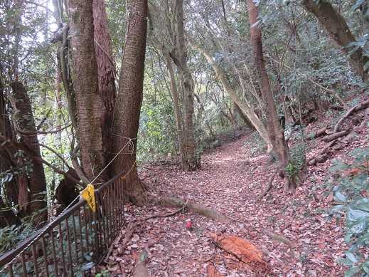 寒い日が続く中、去年の初登りの多治見市の高社山に 根本城趾から登りました。 前回は正月の5日の初登りで、高社神社の手前で出会った 地元のご夫婦に根本城趾からも登れるとお聞きして 今度はそのルートで登ろうと思っていました。 ![]() 元昌寺の駐車場に車を停めて登城口から登ります。 寒いので今日もマフラーをすっぽりと頭から被って歩き出します。 ![]() この看板によると、根本城は砦跡となっています。 戦国時代の16世紀後半、土豪の若尾氏が詰めの城としての砦を築城し 平時は山すその御殿屋敷に居住したらしい。 城跡には中世後期の山城の遺構が残っているということで 興味津々登ります。 ![]() まっすぐ直登すると思いきや すぐに左へ、山腹を西の方へ巻いて 変だなあと思いながら、誘導する矢印看板に従って進みます。 ![]() せっかく少し登ったのにその分下って、 登り返しをして ![]() どんどん山腹を西へ巻きます ![]() まだ下って、小さな丸太橋を渡り ![]() 民家の横を歩き ![]() やっと登り始め 思ったよりも時間がかかっています ![]() ここから激登り ![]() 「再婚の木」と相棒が名付けた木 分かれてはまたくっついて、また分かれた木です。 ![]() 滑りやすい落ち葉の道 帰りは気を遣うね ![]() 旗挙げの松 史跡になっています でも意外に細いので、松は成長が遅いのでしょうか・・・ ![]() やっと分岐 左へ行くと根本城趾、右へ行くと高社神社と高社山です。 まず城跡に行って、ここに戻って高社神社や山の方に向かいましょう。 ![]() 大堀切の横を通って ![]() 本曲輪に到着 多治見の市街が見えています。 しかし今日は雲が低く、寒い。 ![]() 今は植林されていますが、その当時はこの広場が本曲輪 ![]() 証拠写真です 標高285mです。 ![]() 北側の一段下に、二の曲輪が見えています。 下りてみたけど何もないので先ほどの分岐に戻って 高社神社を目指します。 ![]() 途中に簡単な地図を貼ってくれています。 赤いラインが私のルート 登ってすぐに左へ誘導されました。 ![]() 高社山の外周の北回りで高社山北峰を通って 高社神社に向かいます。 ![]() 北側なので雪が残っています 寒いはずです。 右の森の向こうから時々人の声らしきのが聞こえて来るので 木の間から透かして見たら牧場のような草原が見え ゴルフ場が隣にあるのだとわかりました。 ![]() 山塊の一番北の尾根を歩いています。 ところどころでこの標識が有るので助かります。 ![]() まるでオブジェのような木にカラフルなゴルフボールを載せていますが なぜに? ここまでゴルフボールが飛んでくるのでしょうか・・・ ![]() 白山と書いている標識があり、 たぶん天気が良ければ白山がここから見えるのですね ![]() 北側だから雪が残っています ![]() 大外側の稜線歩きもここからは高度を上げて行きます ![]() 大きな杉の木の横に、秋葉神社跡の碑が有りました さっさと歩く相棒は気が付かなかったようです。 ![]() 6股に分かれて成長している大きな木 ![]() 一番高いところが高社山北峰 相棒がさっさと行ってしまったので ![]() これは帰りに写したもの ![]() 中央アルプスと御嶽山が見られるところ 今日は曇っている上にガスガス ![]() 今度は天気の良い日に来よう ![]() どんどん下って行ったら、目の前に何やら建造物が・・・ ![]() 高社神社 参拝してここでお昼ご飯を食べるか迷ったけれど 先に進むことに・・・ ![]() 境内から下ります 長い石段、せっかく登ったのに下りるのは嫌ですが、 山頂に向かうルートはいったん下らないといけません。 ![]() 広葉常緑樹の森の中を進んで 山頂に向かって登り返しが始まります。 左に愛宕神社 愛宕神社の後ろを通ります。 ![]() 雪がたくさん融けずに残っています。 ![]() 展望地にやってきて、ここでお昼ご飯です。 風が有ると吹き曝しで寒いのですが 幸いにも風はあまりありません。 ![]() 多治見の市街地を見ながらお昼ご飯を頂いて 山頂に向かいましょう ![]() 展望地から北へ10分ほどで高社山山頂(417m) 三等三角点がしっかり石で囲まれています。 ![]() 三等三角点(点名 北小木) ここから同じルートで下山します。 ![]() 登るときに気が付かなかったけれど 伊吹山の展望地も有るのですね、もちろん今日は見えません。 ![]() 根本城跡登城口 思ったよりも城跡まで時間がかかって さらに北峰と高社神社も、下調べして想像してたより遠くて もっと短時間に簡単に登れるのかと思っていました。 でも下山は同じルートなので、帰りは早く感じました。 以前のルートは簡単に登れるので、時間が無い時は良いけれど 今回のルートは城跡や神社など見どころも有って、 中央アルプス・御嶽山・白山・伊吹山など展望できるところも有るので 面白いので今度はもっと天気の良い時に登りたいですね。 お気に入りの記事を「いいね!」で応援しよう