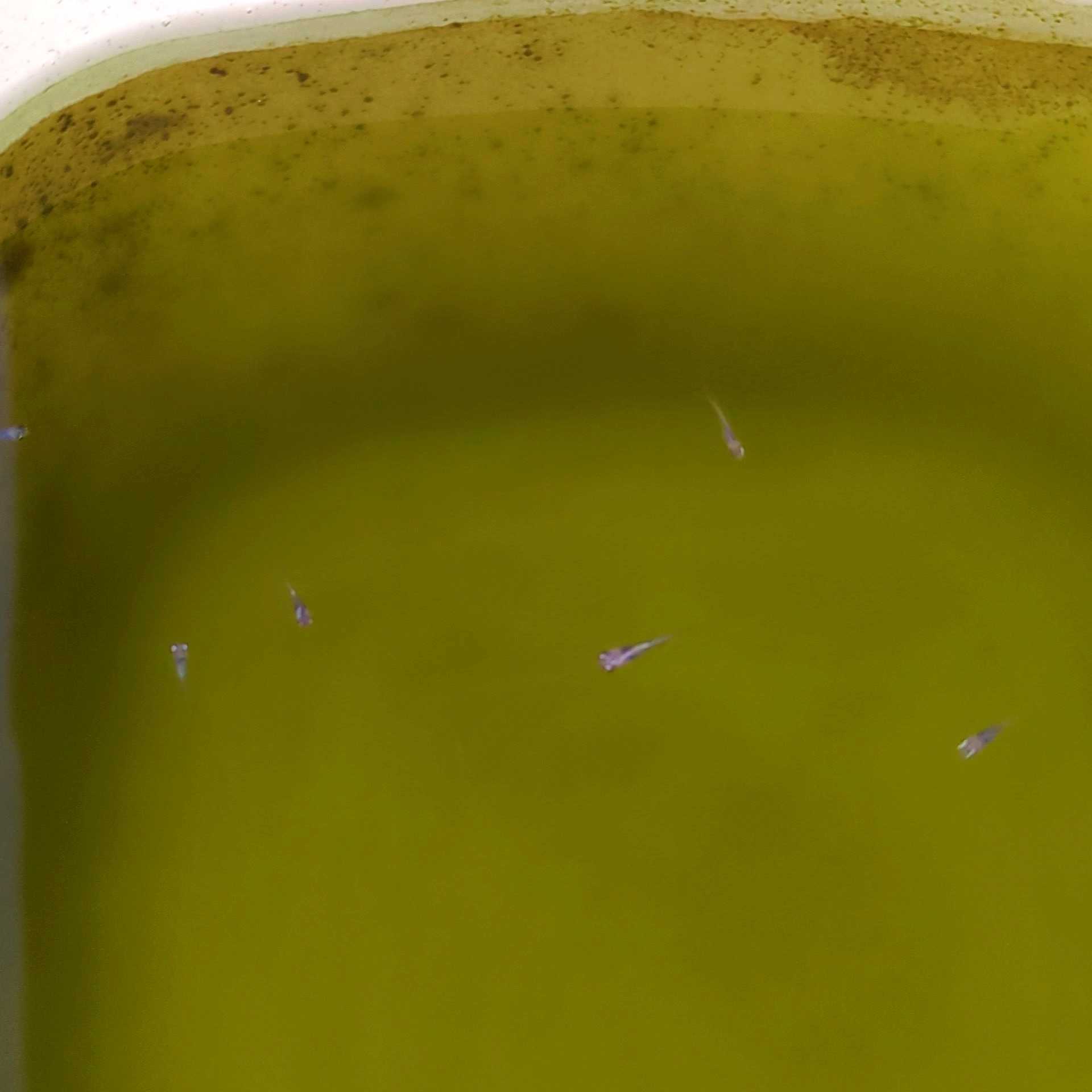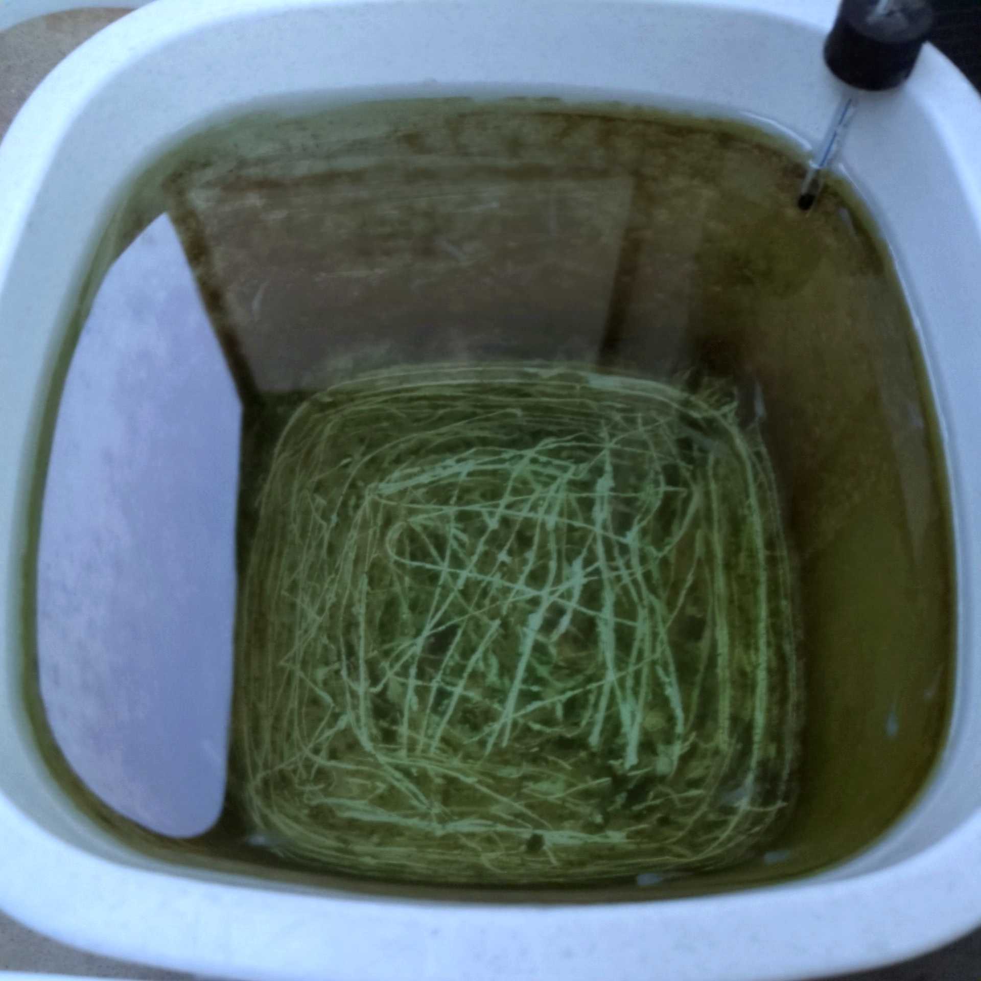 ![]() (反射で背景が映り込むため加工しています。) 隣に置いているバケツは↓のように それほど青水にはなっていないのに。 何故こんなに違うのか不思議です。 ![]() ちなみに夕方に測ると、水温も1℃も違いました。 青水の方が低かったです。 微妙な置き場所の差なのか、あるいは 青水の保温効果によるものなのか? 差が大きくて驚きました。 水温計 GEX 浮くクリスタル水温計 屋外飼育 関東当日便 メダカたちはどちらのバケツも元気です。 ただ、透明っぽい水のバケツの方は 全然★にならないのに対して、青水の方は 10日に1匹くらい★になっている気がします。 ![]() 毎日底面掃除と足し水をしているので 酸欠のリスクは少ないと思いますが、 水質が酸性に傾きすぎると良くないでしょうから 週末に(自分の風邪が治っていれば)半分くらい 思い切って水換えしようかと思います。 ![]() 【送料無料】めだか色々お楽しみセット / メダカ (※沖縄は別途送料必要) 当ブログは、にほんブログ村に登録しております。 もしよろしければ↓のバナーをポチッとお願い致します♪ お気に入りの記事を「いいね!」で応援しよう