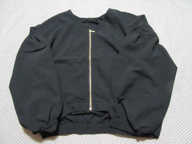 ジッパーがゴールドです 後ろ側が少し長めになっているのもイイよね 肩下15センチのあたりからボリュームのある袖になっていて それが黒色でもシャープすぎず可愛らしい雰囲気を作ってくれます 袖口も半分ゴムが入っているので腕まくりも出来るのよ 後ろの首と裾にもゴムでシャーリングがあるので後ろ姿も 優しい雰囲気になります さっと羽織れるし、パンツやスカート、ワンピースにも合わせやすい 便利なアウターです 着心地もいいし、中は半袖でも長袖でもあうのでシーズン長めに着れそうよ #PR