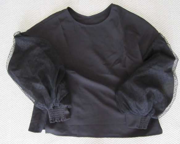 こちらはチュールが可愛くて、オフラインの時にも見て気になっていたお品 黒になってしまうけど、このドットが可愛かったの ↑↓の画像の様に首周りの形が違うので、前後両方着れて雰囲気が変わります こちらも同じく肩下からチュールがあってそれが可愛らしいのよ 袖口は上部分がゴムで腕まくり出来るし、そうすると雰囲気も変わります 再度にスリットが入っているので動きやすくて、脱ぎ着しやすいのもイイ スカートにもパンツにも合わせやすい丈でした FUNNYさんのお品は素材も良くて 縫製も丁寧で シンプルなお品が多いので、流行を気にせず長く着続けられるかなと 思いますよ。人気なのも納得です きゃっくんも少しずつアイテム増やしていきたいです