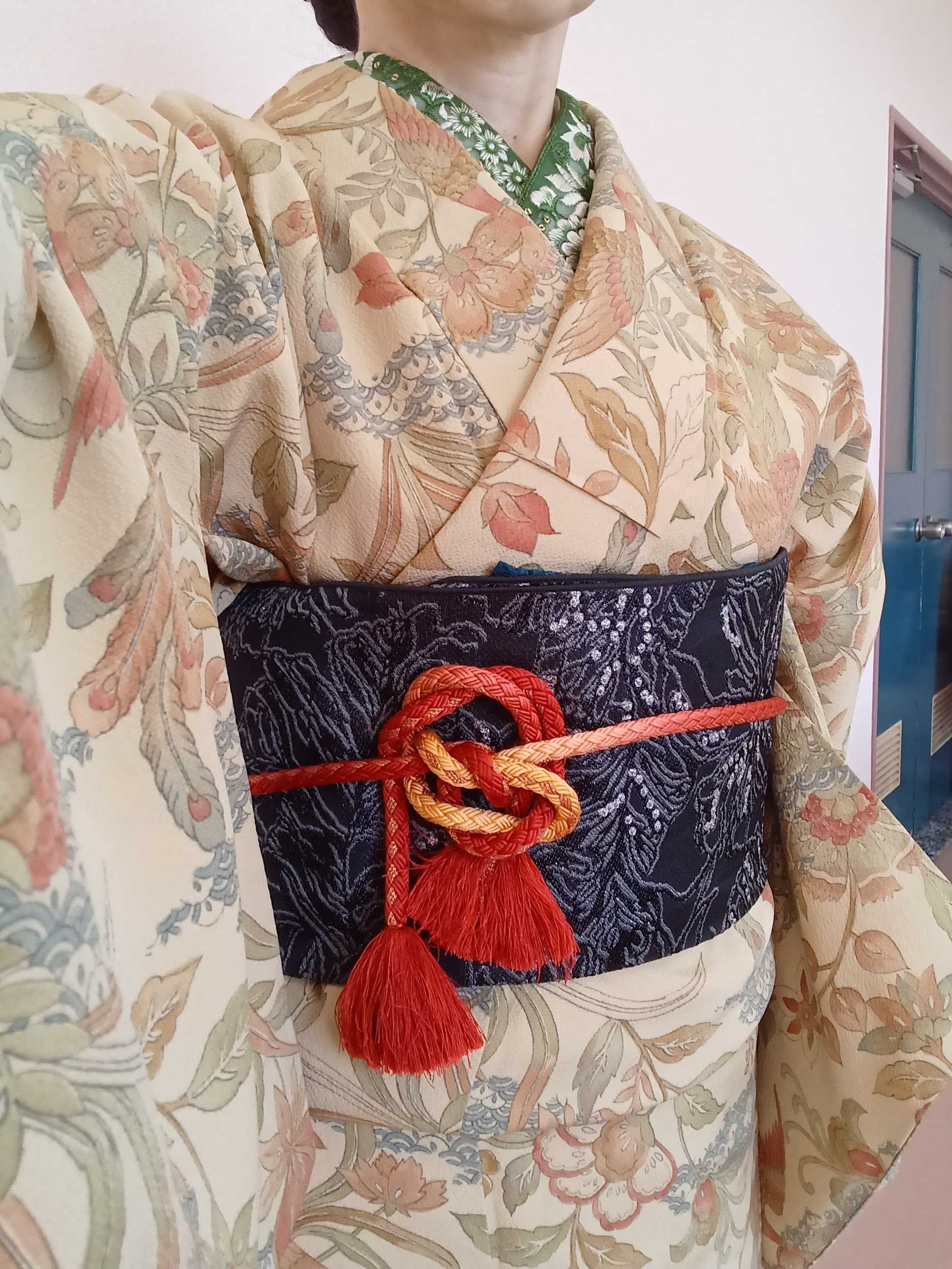 先日、京都きもの市場の展示会が近くであるのを知り、欲しかったものがお安く販売されるというのでちょっと行ってきました。呉服屋の催事というと、反物巻かれて高い着物勧められ、何時間も軟禁状態とか何人ものスタッフに囲まれて逃げられないとか小物買うだけのつもりが支払いさせてもらえず、いろいろと勧められたとかとにかく、着物を買うまでなかなか帰らせてもらえないというネガティブな話をよく聞きますよね。実際に私ダメ子も地元の呉服屋でそんな目にあいました。でもね、それはもう若かりし頃の昔の話 おばさんになると肝が据わるというか、図々しくなるというか、割と断れるようになるみたいです(私だけ?)今回、予約特典で風呂敷かビーズ羽織紐がもらえるというので、予約して行きましたよ特典で頂いたのは、着物を多投紙入れた状態で包めるという大判の風呂敷着物を着て行ったら、可愛い懐紙も頂きました。購入したのは「コーリンベルトしっかり」着物インフルエンサーのすなおさんもお勧めされてて気になっていました。それと、持っていなかった黄色の三部紐ゲットしたものはこちらで 買ったのは左の二つだけ担当に若い男の子が付いてくれたんですが、出身地のことなど自分の話をいろいろとしてきて人懐っこく、素直そうな好青年ですっかり親目線になっていました。反物をたくさん見せてくれたのですが、頂きものの着物がたくさんあるから着物は要らないって言うと、たくさん帯を見せてくれました。でも普段着として着ることが多いのでほぼ半幅帯しか締めないし袋帯も名古屋帯も要らないって話したら、沖縄のミンサーの半幅帯を出してきてくれました。でも、種類が少なくて気に入る色が無い。そしたら今度は、柄を選んでリバーシブルの半幅帯をオーダーできるからと柄見本を持ってきてくれました。営業頑張ってるのが伝わってくるので何だか可哀そうな気になって、何かあれば買ってもいいかなと思ったりもしましたが、やっぱり欲しいものが無ければ買わないですよね。お金を無駄にはできません。。過去に欲しくないもの買った経験があるからなおさら。なので担当の彼が少し離れた時に、他の方に小物の会計をお願いしました。すぐに彼が気付いて戻ってきて会計してくれましたけどね。心の中でちょっと申し訳なく思いつつ、お支払いして帰りました。地方に来てまで、こんなお客ばかりじゃ成り立たないよね~でも高価なものは買える人が買えばいいし、庶民は自分の好きなものに出会った時のためにお金は大切にして取っておかないとね そこで表題の「呉服屋の催事攻略方法!?」あったらいいのにって思いますよね。実は結構重要なポイントがあるんです。まず最初に理解しないといけないのは自分自身のこと。着物に興味を持ったり、着始めの頃は、自分自身が自分の好みをわかってないことがほとんどです。なので、周りに勧められると流されやすくなるんです。その状態で催事に行くことは、カモが葱しょって行くようなもの。だから、着物初心者の頃は簿福屋に近づかない、催事には行かない。それでも気になって行きたいなら、日頃から着物に慣れてて呉服屋さんにも行き慣れたような人と一緒に行くのがいいと思います。自分の好みがハッキリとわかってきてから行くなら、まず好みをはっきりと伝えることが大切です。好みじゃないものを勧められても買いませんという意思を事前に伝えておくと、呉服屋さんもむやみに何でも強く勧められません。一番大切なのは、自分自身の中で本当に欲しいもの以外買わないときちんと心定めしておくこと。目的のもの以外は基本、お勧めされても流す感じ。定価よりどれだか安くしましたと言われても、自分が好きかどうか、実際に着用シーンがあるかどうか、考えることが大切です。着物を普段着にしたいなら訪問着なんていらないし、入学式や友人や親せきの結婚式に着たいと思うなら訪問着が一枚あってもいいかもしれない。人によって着物を着るシーンが違うので、必要なもの、欲しいものも違います。見せてもらったものが気に入ったなら即決も有りだけど、一日考えてからでも遅くないと思います。そのためには催事の最終日では無く、初日とか中日に行くといいです。夜寝る時も翌朝も恋しく思ってしまうほどの着物(帯)に出会えたら、お財布と相談して、良ければ買ってもいいんじゃないかなと思います。それが自分にとって一番のお気に入りとなるかもしれません。あとは、きちんと断るのが苦手な人は何人か複数でで行くとかですかね。着物って魅力的なんです。世界中にいろんな衣服がありますが、一枚の衣に絵画のような柄付けがしてあるものを身にまとうものって着物くらいでは無いでしょうか。自分で着れなくても、見てしまうと欲しくなったりします。でも安いものでは無いので、そこはしっかりと考えて購入してほしいです。呉服屋の催事に行って着物の魅力をたくさん知