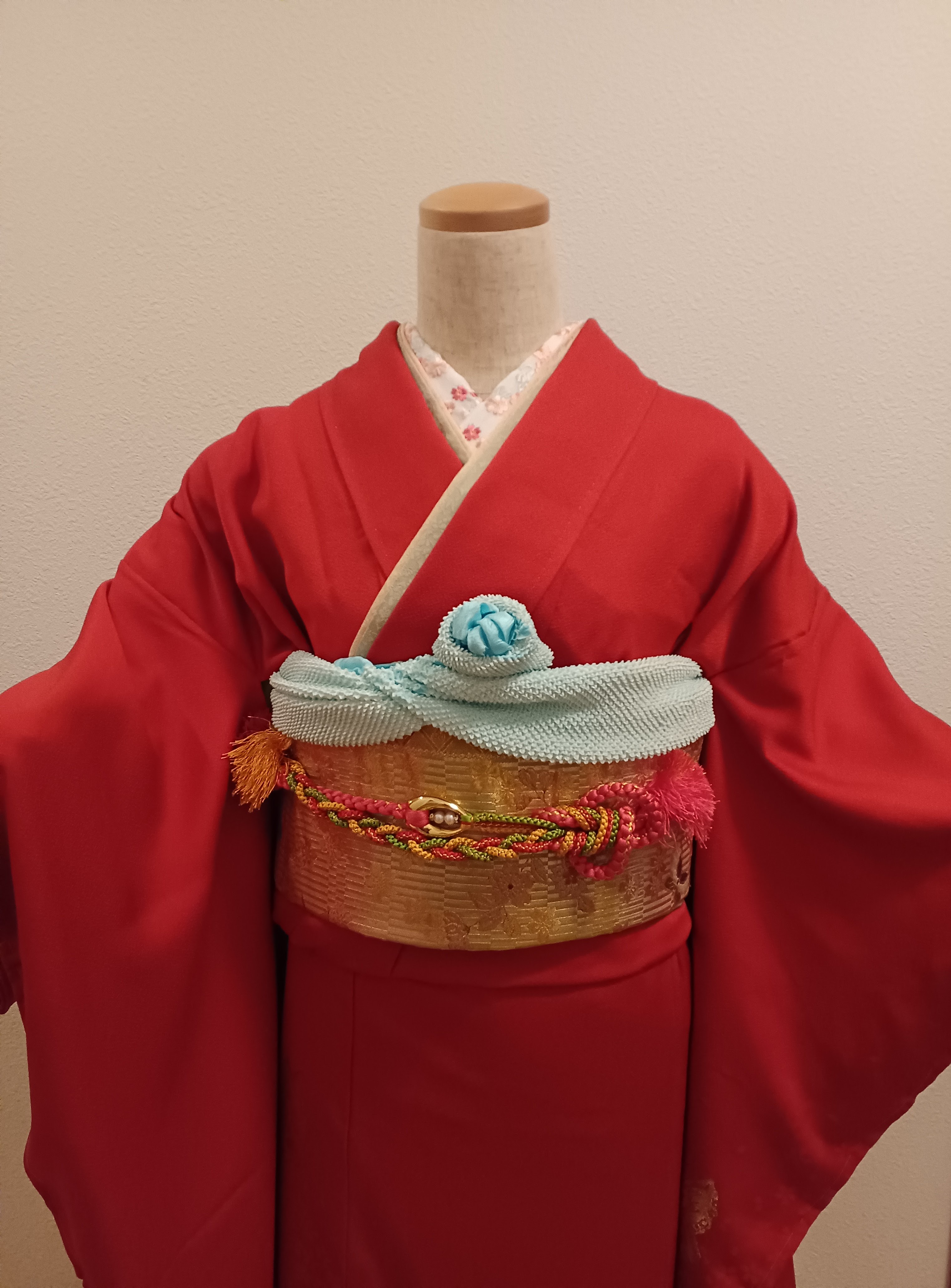 あけましておめでとうございます。 あっという間に2025年ですが、振り袖を縫っていたのは2023年のこと。 すっかり完成報告を忘れていました。 2024年お正月には何とか間に合いました。 とりあえず、ぽてこで着つけ練習した時も写真↓ さすがに振袖の着付けは何度も練習しないと難しい (-_-;)