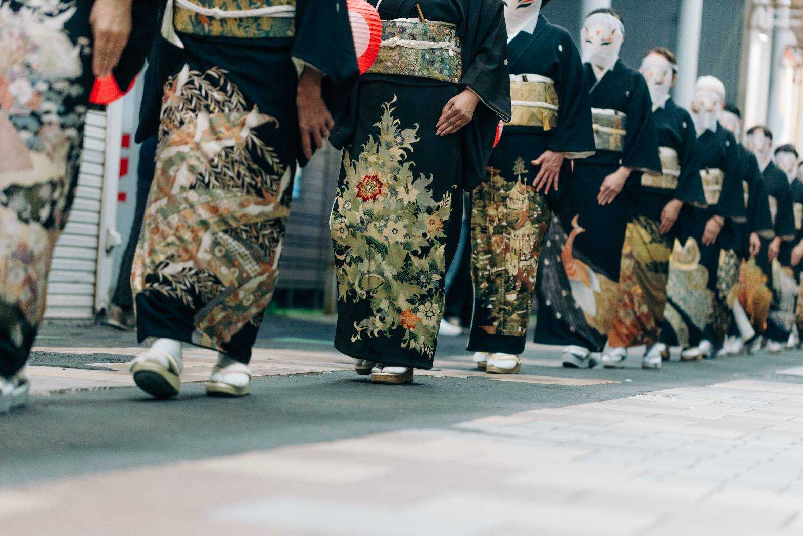 更新が追い付いてません(-_-;) 10月末にハロウィンにちなんで留袖行列がありました。 皆さん、狐のお面で提灯を持って時折チリンチリンと鈴の音が鳴って雰囲気ありました。 結婚式場でも留袖姿の方がここまで大勢集まることなんありませんよね~ もう皆さん素敵で、見るだけで楽しかったです。