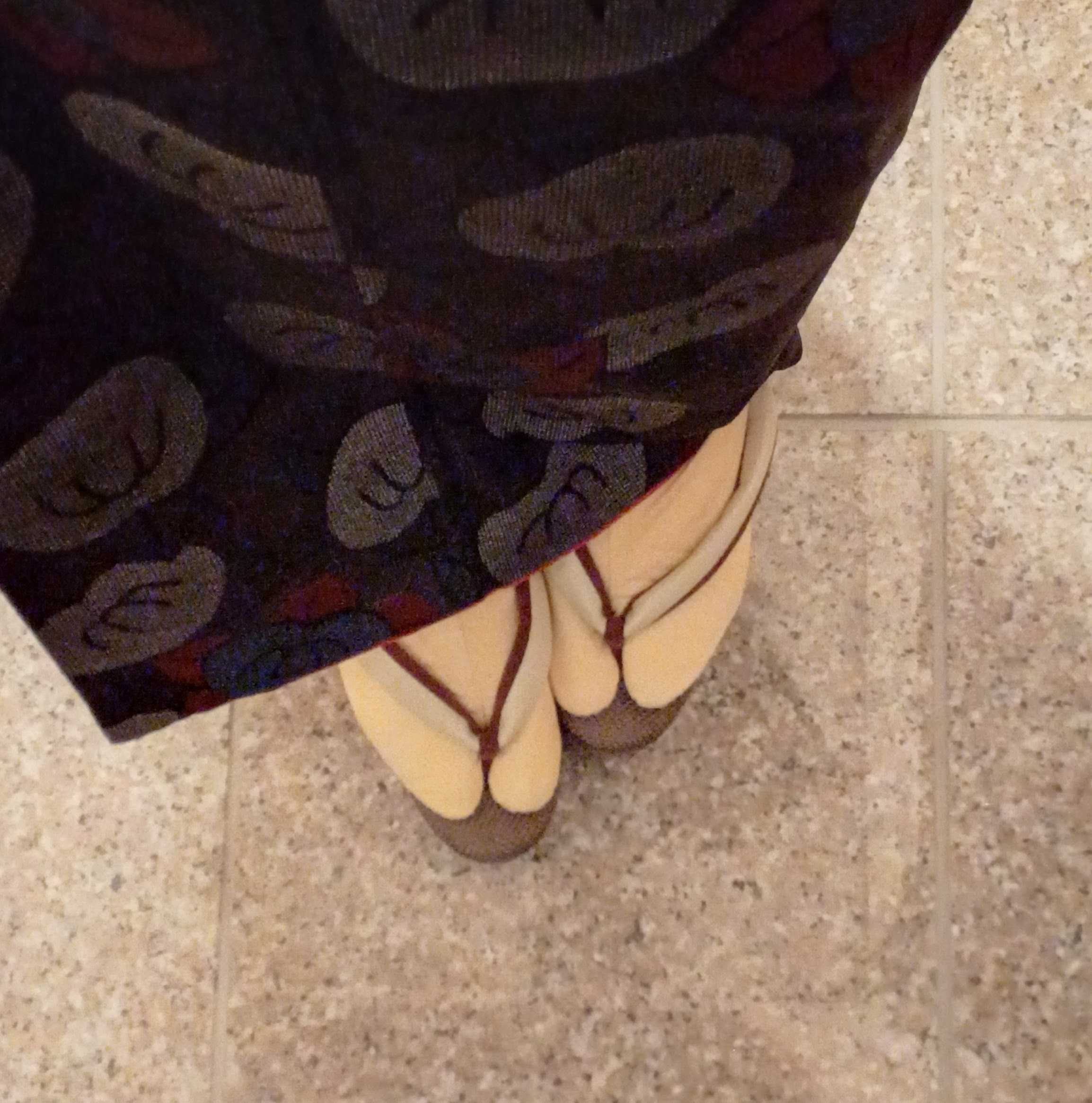 そういえば攻略法!?で書きませんでしたが、下手でもなんでもいいので着物着ていくといいです。 着物着てたら、その上から反物ぐるぐる巻けないですもんね さて、京都きもの市場の展示会に行った時のコーデ おそらく交織の椿柄?の袷に猫と椿柄の半衿 出番が多い赤い半幅帯 足元は薄だいだい色の足袋にカレンブロッソ(茶)