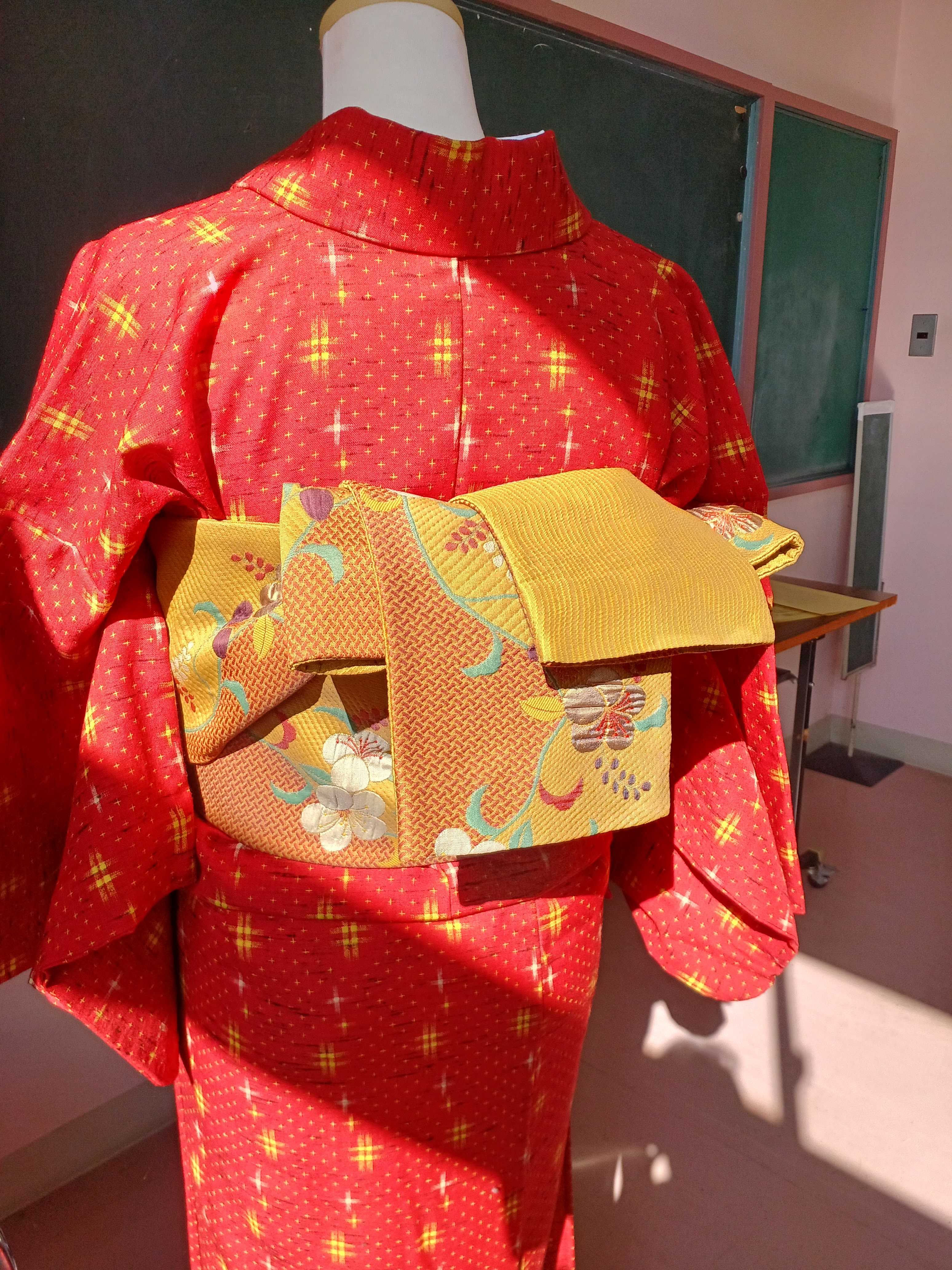 11月に公民館の文化祭があって、和裁教室では作品展示をしました。 ダメ子は今年は教室を休みがちだったので他の生徒さんの作品の展示を手伝いました。 ボディに着付けるのに、帯が固くて結び辛かったです キッチリ結べてないのが悔しい ーー