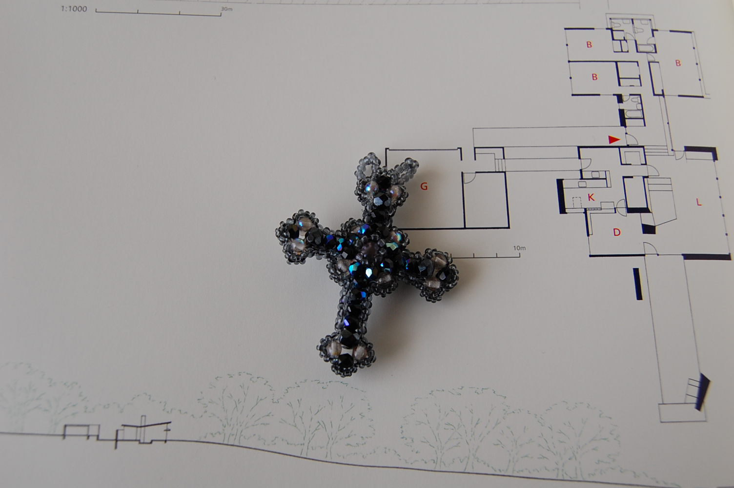 ダンデライオ~ンと松任谷由美さんの歌を口ずさみながら…4~5年前に作りかけ、温めていたクロスのモチーフ。今日引っ越す、クロス好きの友人のために完成させました。まさに彼女に出会うために黒真珠のクロスは作られた…。このクロスは細かく、テグスで補強しきれずに完成を諦めていたもの。不器用な私にはテグスは無理!!!と、ステッチに目覚めさせてくれた記念作です。プロフィールに"不器用な"ビーズアクセサリー作家と加えておかなくちゃ