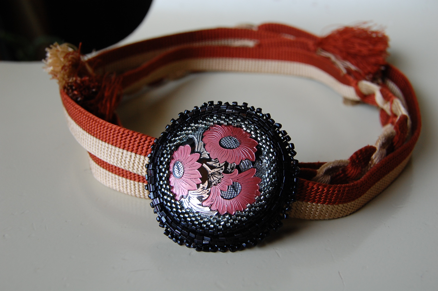 フォトブックを作成中です。諸事情のため,この際に作っておこうと思い立ち,古い画像を整理しながら再構築いたしました。ブログのフォトアルバムのファイルも壊れたままだったのでこちらでもアルバムに一つ一つコピーしてまいります。毎日少しずつ画像をアップしてまいりますのでお目障りな点,ご容赦くださいませ今日の画像は帯留め。義母のために作りました。日本製のヴィンテージカボッションを使用し,ビーズ刺繍で土台のウルトラスェードに留めつけてあります。にほんブログ村皆様のポチリを楽しみにしております。にほんブログ村