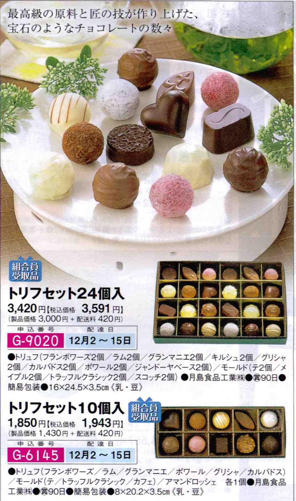 おいしいです。月島食品のチョコレートトリュフ。昨日、ギフト商品のサンプルとして一握り分いただきました。口に入れると、素直な口どけ。くせのない風味だけれど、日本人の口に合う繊細なチョコレート。月島食品のチョコレート製品は生活クラブで販売されています。トリュフはこの季節のギフト商品で、申し込みは11月上旬まで。上の画像はカタログから取り込みました。
