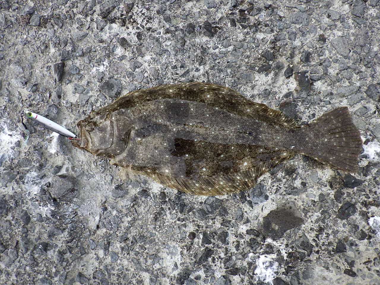 先月のソゲ3連発ポイントで、今度こそキープサイズを狙っています。 ![]() 水面にはベイトフィッシュ(ちびサヨリ)の群れがいますが、それを狙うフィッシュイーターの姿は見当たらず。 それでも朝イチはまずメタルジグの早巻きで青物を狙ってみますが、やはりアタリもなし。 そこで前回ソゲを連発したジグに切り替え、遠投してボトムを探ってみると……いきなりの根掛かり? ……のわけがない(沖に遠投すると障害物のないポイントなので) これは、なかなか釣果に恵まれないDIALUNA S106MLにとって初めての「ロッドパワーに相応しい」魚、慎重にファイトして寄せると予想通り、いいサイズのヒラメです。 足場が高いのでタモ入れに少し手こずりましたが、無事にキャッチ。 計測すると55cm、ショアヒラメとしては文句なしのサイズです。 ![]() 久々のヒラメをありがたくキープして同じ攻め方を続けると、またイイ感じのアタリ。 先ほどよりはずいぶん小ぶりですが、それでも35cmちょいほどのヒラメでした。 ![]() これはリリースし、その後1時間ほどヒラメ狙いと青物狙いを一投ごとに切り替えてキャストを続けましたが反応なし。 6時半過ぎに遠雷らしき音が聞こえてきたので納竿。 今日みたいに、近場で、短時間で納得の釣果が出て早くに切り上げると、その後のんびりできていいですね。 しかし、そろそろ「今シーズンはブリに出会えないのでは?」という不安が高まってきています。 【今日のタックル】 ・ロッド:シマノ DIALUNA S106ML ・リール:シマノ ツインパワーC3000MHG ・ライン:PE0.8+リーダー12lb 【今日の釣果】 ・ヒラメ:55cm、35cm お気に入りの記事を「いいね!」で応援しよう