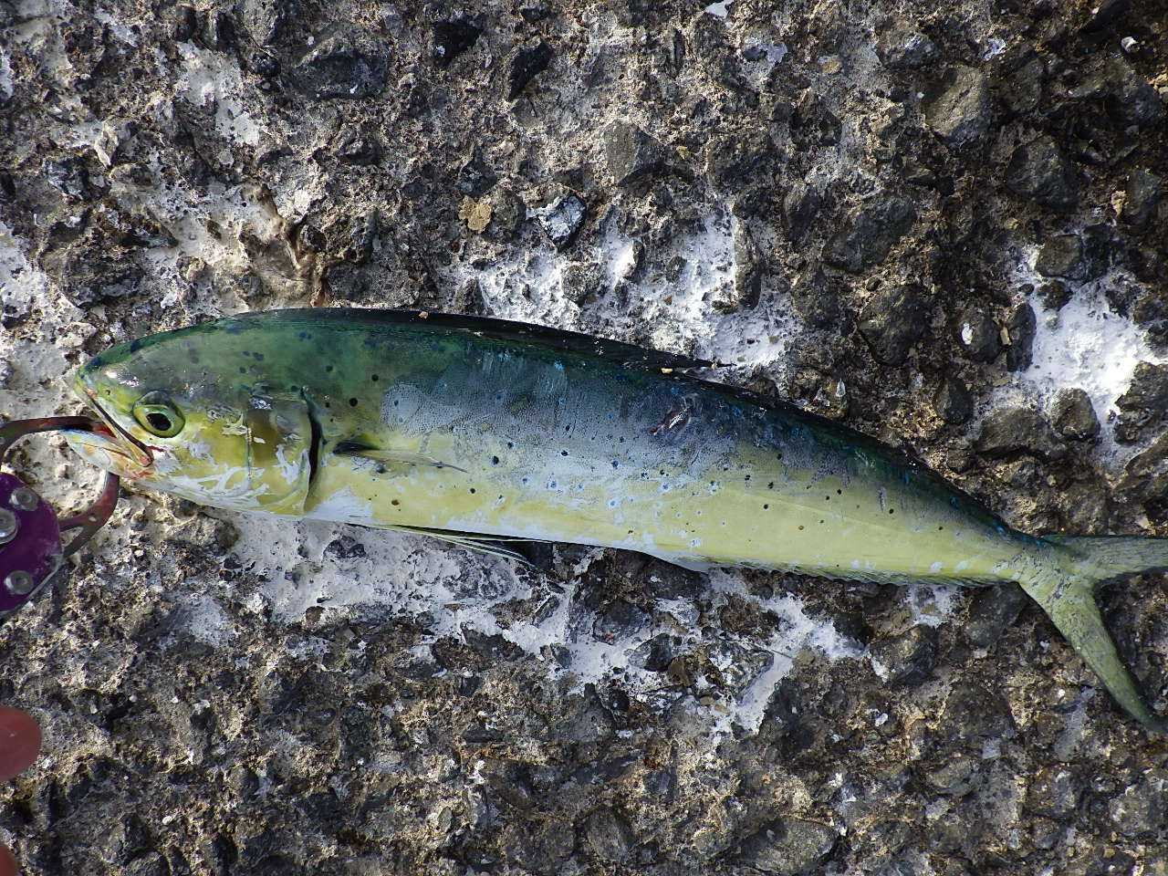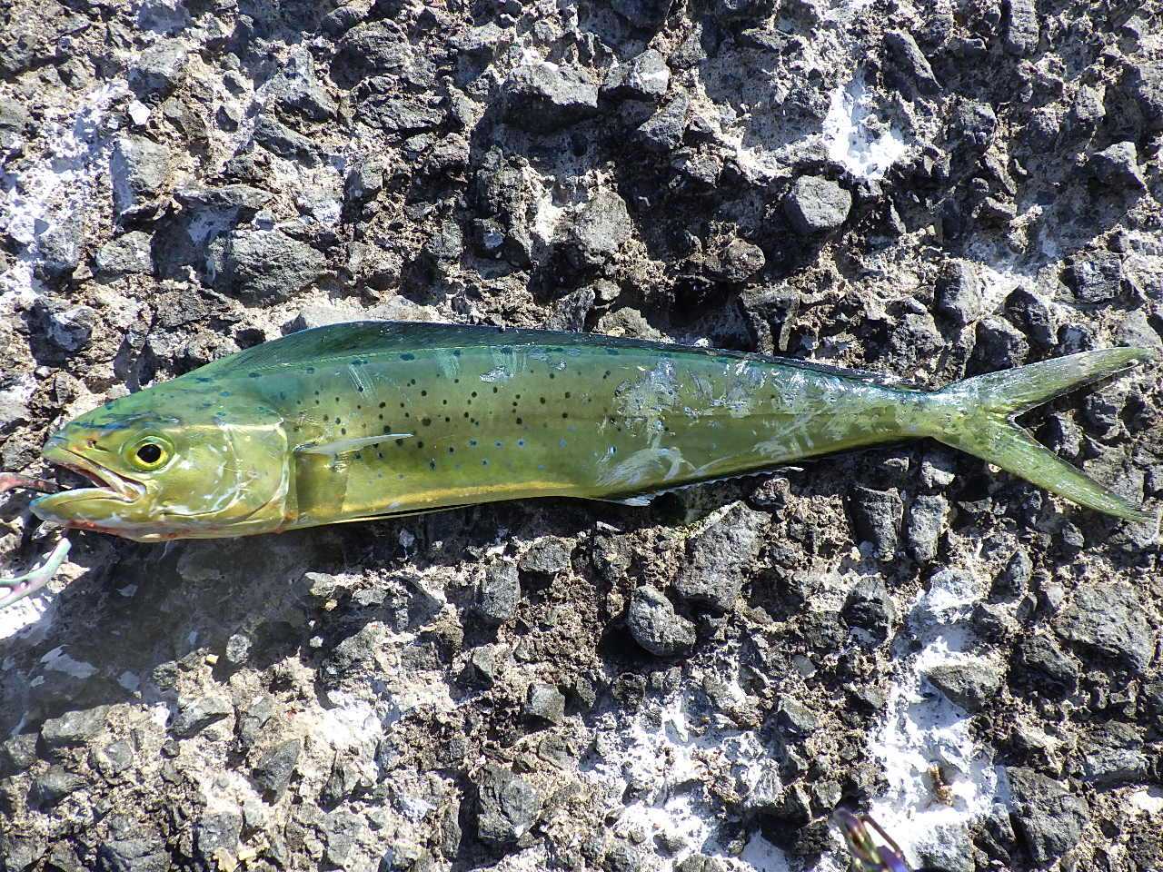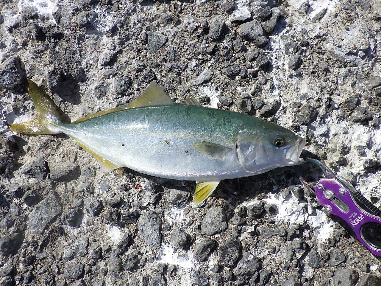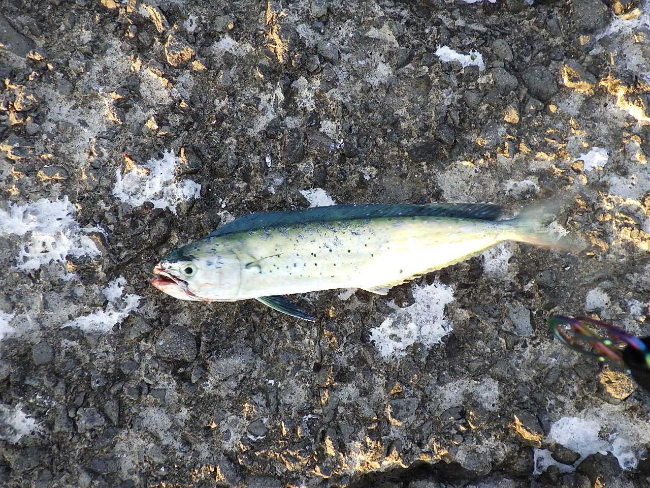 最近、カヤック用の新兵器もいくつか仕入れたので試してみたいのですが、まあ安全第一ということで。 ![]() 5時過ぎに釣りをはじめると、一投目でいきなりヒット……は前回同様20cmに満たない小サバでした。 今日もまたコイツがうるさい日かと思ったら、小サバの反応はこれっきり。 その後しばらく魚の反応はなく、前回のこの時間にたくさんいたベイトフィッシュ(サヨリ)の姿もなし。 今日はダメな日か……と思ったら、6時少し前に射程距離内でナブラ発生。 急いでその方向にキャストすると、ヒット。 手応えから前回同様30cm級のフクラギかと思ったら、見えてきた魚体がなにか変。 ![]() なんと、35cmほどのペンペン(シイラ)でした。 シイラなんて、釣るのはもちろん見るのも初めてです。 昔から、夏場に太平洋側で釣れるとは聞いていましたが、最近は石狩湾でも釣れるんですね。 その後も時々ナブラが立ち、その度にぽつりぽつりとヒットしますが、サイズアップはせず、ナブラの頻度の割にヒット率も低め。 追われているベイトが思いのほか小さいようなので、ジグを30g→15gにサイズダウンするついでにタックルもDIALUNAからSalty Stage Prototype XMJS-972ULに交換することにしました。 今日はフクラギ祭りに当たったときに備えてライトゲーム用のタックルも用意していたのです。 これがハマったのか、その後はヒットが連続。 ![]() ![]() ![]() 途中、今までとちょっと様子が違うナブラを狙うと、ここまでまったく姿がなかったフクラギもヒット。 フクラギの群れも入ってきたのかと喜んだけれど、フクラギの反応はこれっきりでした。 ![]() 40cm前後のペンペン、30cm強のフクラギとはいえ、ライトタックルでならかなり楽しめます。 久々に、ほどよい緊張感のあるライトゲームを堪能しました。 10時過ぎると潮目が消えて完全に魚の反応がなくなり、その後1時間ほど粘ってみたけれどペンペンもフクラギも戻って来ず、11時過ぎに納竿。 なお、シイラを釣るのは初めてなので、味見用に2尾キープしてフライにして食べてみました。 クセがなくて身はふわふわでなかなか美味しいですね。 刺身は青物というより白身魚系の味でこれも美味しかった。 【今日のタックル】 ・ロッド:シマノ DIALUNA S106ML ・リール:シマノ ツインパワーC3000MHG ・ライン:PE0.8+リーダー12lb 【今日のタックル】 ・ロッド:Abu Garcia Salty Stage Prototype XMJS-972UL-RF ・リール:シマノ ツインパワーC2500SHG ・ライン:PE0.8+リーダー10lb 【今日の釣果】 ・シイラ:40cm前後×10 ・フクラギ:30cm強×1 ・小サバ:×1 お気に入りの記事を「いいね!」で応援しよう