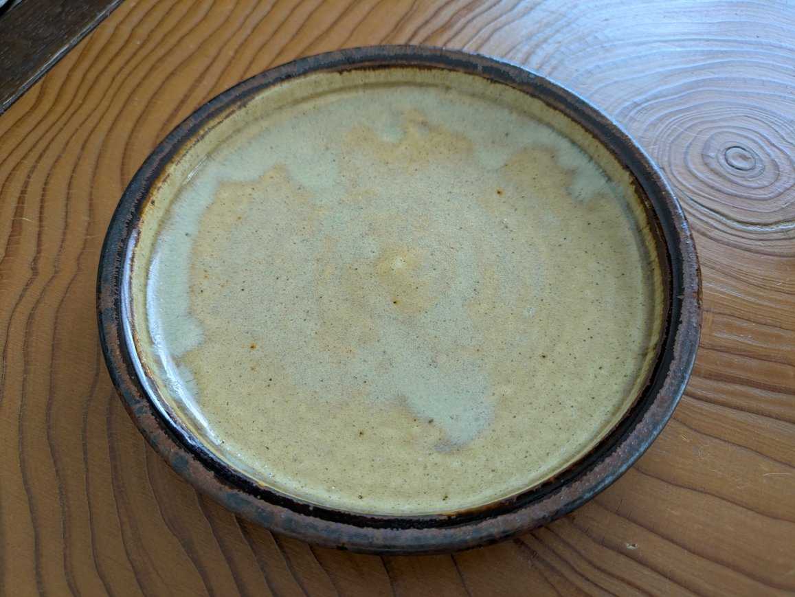 メインを乗せるのにもってこいの粉引7寸皿です。焦げた感じの縁の色もがっつり好き。リム付きだから、盛り様によっては見栄えするする。(←ここ課題)軽くて扱いやすい八木橋さんのうつわは、ホント、おすすめです。重ねた時の収まりの良さもたまらんね。