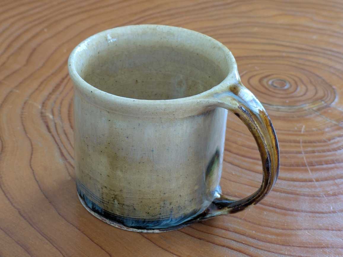 粉引きマットのカップです。毎朝のヨーグルトに使っています。そば猪口のように、なんにでも応用できる形とサイズです。