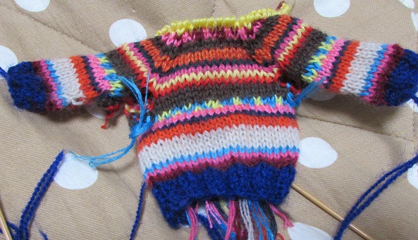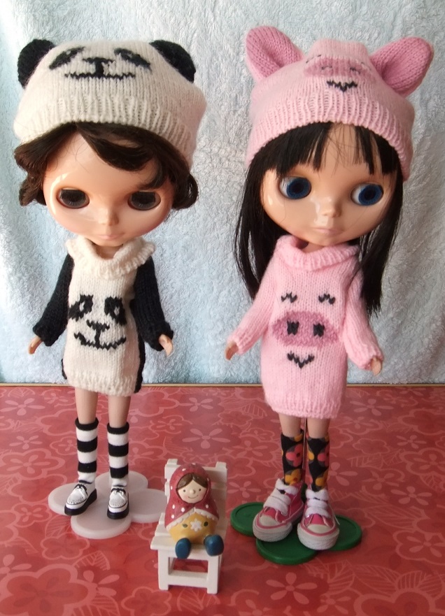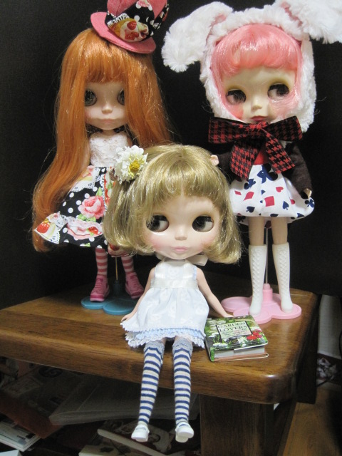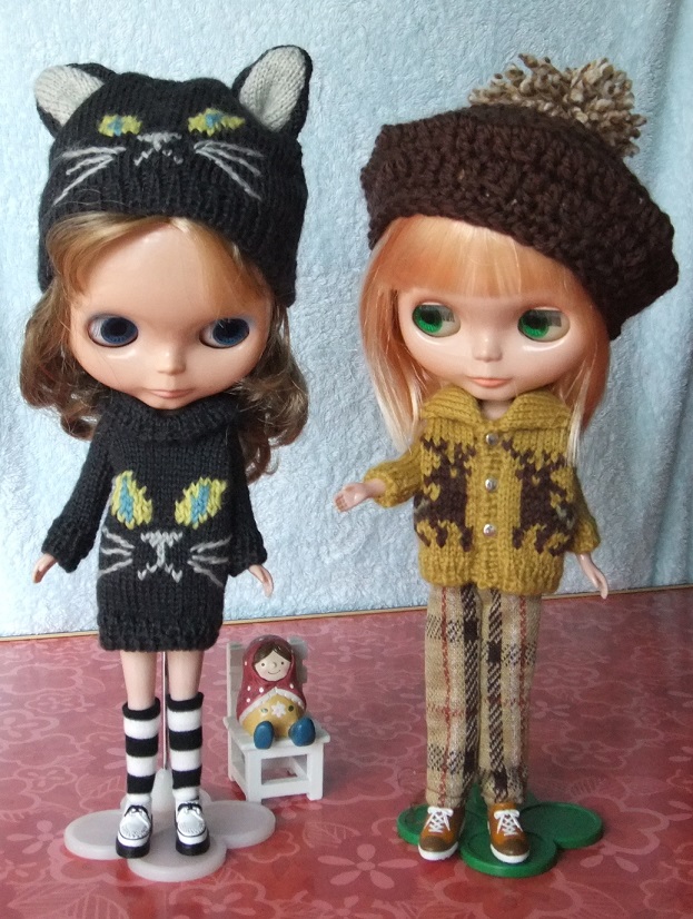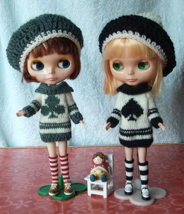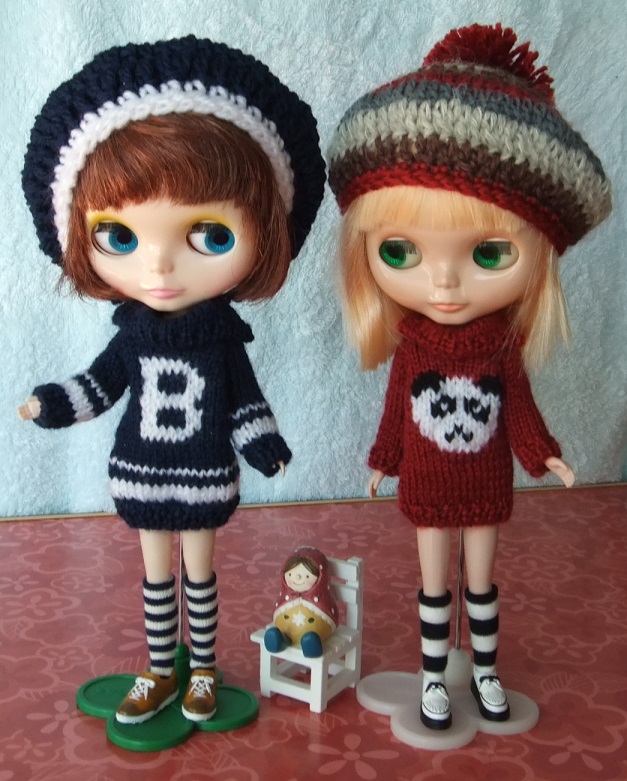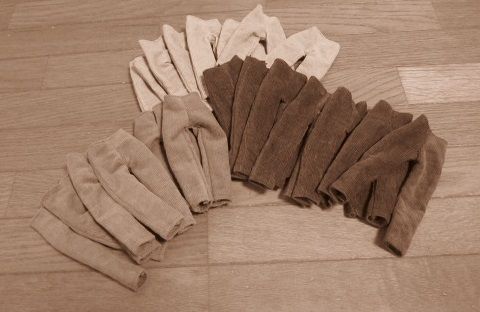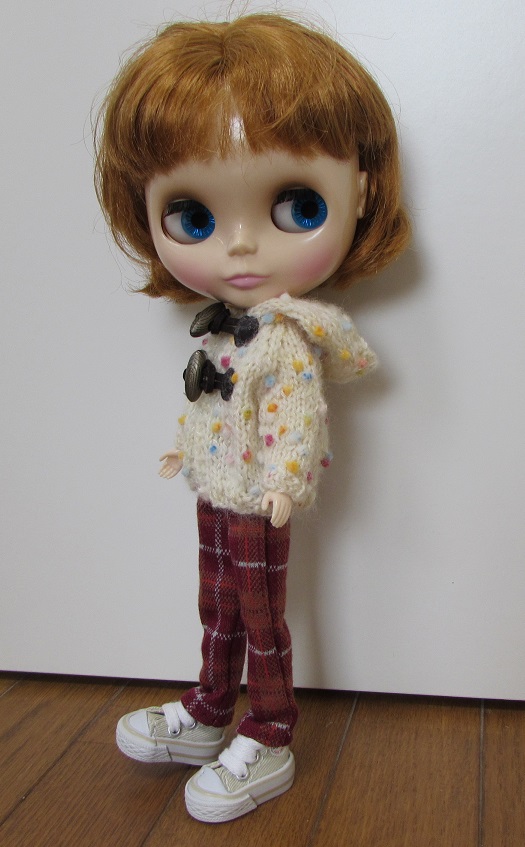 1月12日のドールショウ42に向けて、今日は1日中、ブーツカット・デニムを縫っていました。型紙を作るのに午前中いっぱいかかってしまいました~。なかなか思う形にならなくて、何度も補正して縫い直し。何とかいい感じになったので、9本作ろうと一気に布を断って、ちまちまとピケ処理をしたあとよーし、と意気込んでミシンでガガガーッと縫っていたら、3本分が、みんな同じ向きであることが判明。げげっ。それで、また布を断って、ピケ処理して(これが意外に時間がかかる)向きを確かめ確かめミシン掛けしていたら、意外に時間がかかってしまいました。まだ、完成にはいたらず。明日にはできるかな。母と妹チームは、続々作っています。↓