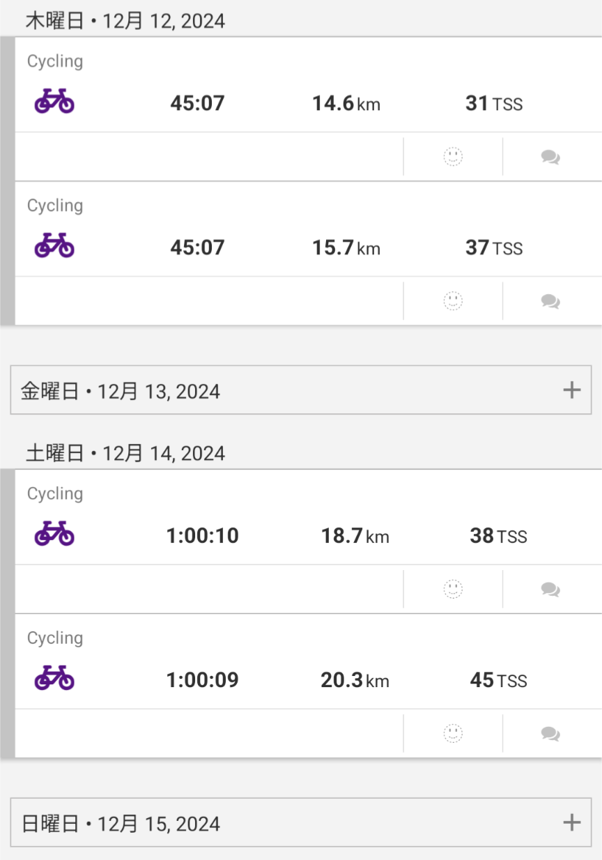 12/14土は、実走するぞ!と朝起きたら、雨。。。で、ローラー 翌日の日曜日はスキー。気温も低く、雪もかなり降っていましたが、15時半まで滑ってた。 ![]() ![]() ![]() ![]() ![]() 12/22、26-27とスキーに行き、その疲れでローラーするのが精一杯w で、年末。 来年は東京出張も増えるし、ますますローラーばかりになるかもね。 お気に入りの記事を「いいね!」で応援しよう