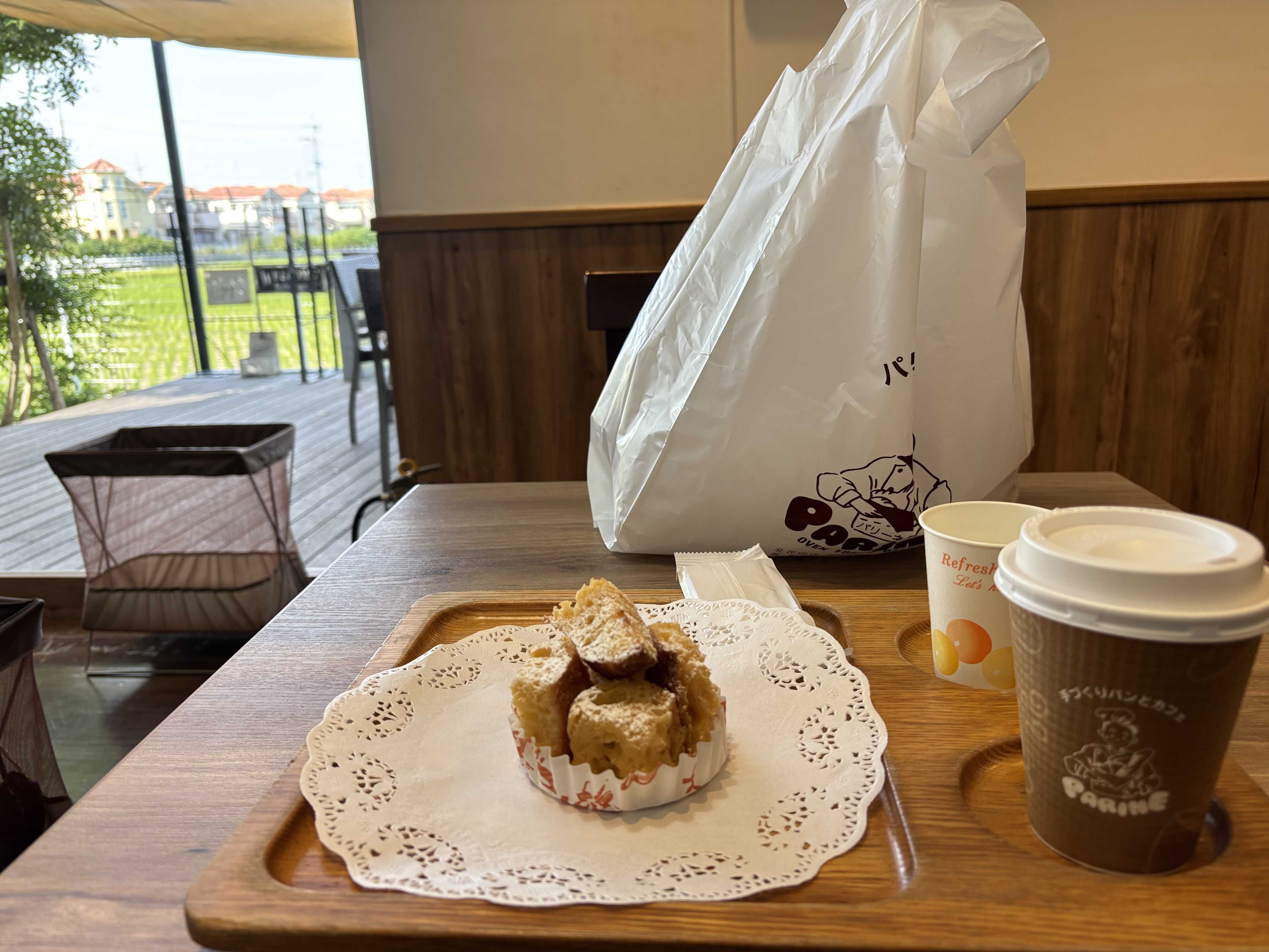 親子丼定食 もう15時なのでお腹空いて・・ 美味しかったー 好きなパン屋さんでカフェ・オ・レ ここはいつもお客さんが多い 田園風景が癒される パンもたくさん購入 孫へのお土産