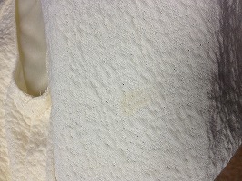 岐阜県は 大垣市 神戸町 池田町 揖斐川町のところクリーニングの窪田です。この間まで死ぬほど暑かったですね。しかし本番はこれから…。嫌ですね~それでは、本日のしみ抜きです。ワンピースに黄変です。取れました。