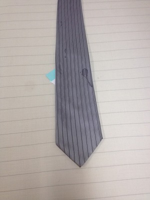 岐阜県は 大垣市 神戸町 池田町 揖斐川町のところクリーニングの窪田です。今日散髪に行ってきました。冬ですけど、長さは一センチくらいにしました。寒いですけど、この長さが一番落ち着きます。これで、年末までがんばれます!それでは、本日のしみ抜きです。ネクタイに汚れ・しみです。取れました!