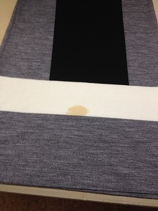 岐阜県は 大垣市 神戸町 池田町 揖斐川町のところクリーニングの窪田です。12月に入ってから、ももひきをはいてます。今はパッチといいますね。暖かいです。新婚旅行で真冬のフランスに行きましたが、ももひきをはいてなくて、モンサンミシェルで凍死寸前だった事を思い出します(笑)それでは、本日のしみ抜きです。丈長セーターにしみです。きれいになりました。