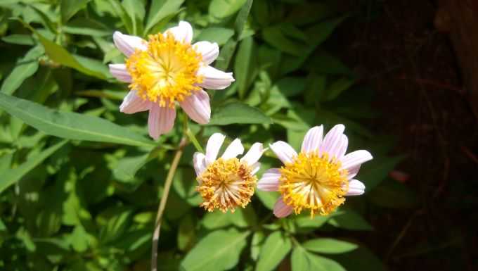 昔からなんだか相性?の良い?植物があります。車で走行中であったとしても、気になって止まってしまう草むらがあったり、目の端に一瞬かすってしまうとかして。 草刈り途中のC地区(農園はA地区・B地区・C地区と区分けしてあります)は、どちらかと言うとシロバナセンダングサがおおいにはびこっている地区。 10日の草刈りの際、久しぶりにシロバナセンダングサの双子ちゃんに出会いました。 ![]() この草は種子が服にくっつくので(シガヤーグサ)と呼ばれ、嫌われ者です。草丈は伸びるわ、出した茎が地に触れるとそこから根をだし、さらに勢力を広げるわで、困ったものです。 ところが、花はマーガレットのように白く愛らしく、年中咲いているので、ミツバチの蜜源としては重宝される花です。 島には4種類のシロバナセンダングサがありました.偶然の縁からこの花を追っかけていた私は,2008年,上下に向いて花開いたセンダングサを見つけました。不思議な咲き方だったので,ブログアップ(2008年3月29日)したのですが、その年にもう一つ素敵な雰囲気の花を見つけました。それが「天女」と名付けた写真の花です. ![]() (天地を指す花) (天女) 花の変化もさることながら、時々斑入り葉っぱの株やピンク色の花が咲いた株もあったりして,変化が多すぎて以前から興味深々でした.しかし種子を採って蒔いても固定化できません(これはもちろん私の技術不足‼)。 ピンク色のセンダン草は,4年に1度くらい出会えるのですが,どの花と交配したのか、いまだにわかりません。近々では先月改善センターの花壇に咲いていました.個人的に不思議に思うのは,これらの花はいつも私が何か気になって足を止めてしまう場所に,咲いているという事です. この花との付き合いは,かれこれ30年近くになります. 旧暦12月21日 六輝は「友引」 ある記事の中で、お店を経営している方が、「友引は素晴らしい日だ」とおっしゃっていました。 友を引いてお客様が入ってくるので万々歳という事らしいです。 物は考えよう、何でも解釈一つ。 今日も良き日なれ. お気に入りの記事を「いいね!」で応援しよう