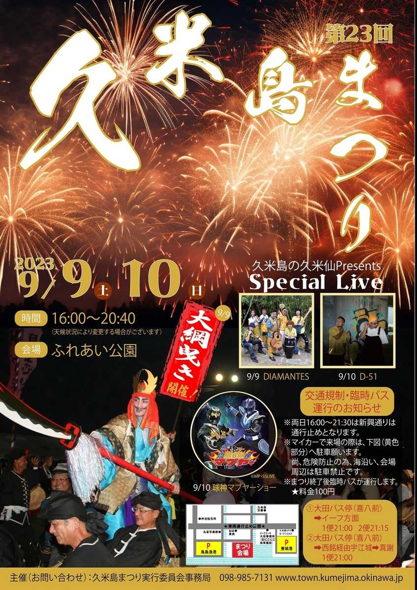 今日は、久米島最大のイベント「久米島町祭り」の2日目、最終日です。 久米島町女性会は盆踊りに参加です。 私は、こと踊りに関しては、とても不器用です。久米島町女性会の古参メンバーは、長い付き合いで、それを十分知っていますので、私が盆踊りに参加しなくても、とやかくいいません。手と足と違う動作をする踊りを皆よく覚えられるものです。私は何回やっても覚えられません、みんな呆れているとは思いますが、いいのか悪いのか、今では誰も咎める人はいません。 でも、女性会のメンバーとしては、お祭りに参加(見学)協力はしませんとね 皆様お疲れ様でございました。 さてお祭り最後の夜も、恒例の花火で締めくくりました。会場自体が海の前(埋立地)ですので、うまい具合に防波堤から打ち上げる花火は、夜空いっぱいに広がり素晴らしくよく見えます。 ![]() 私は、写真が下手ですので、よく写せませんでしたが、とりあえず「お祭りにはいきましたヨ」の証拠写真です 実際の花火は数倍も派手でしたからね 今更ですが、今回のお祭りポスターはこんな感じでした。 ![]() それにしても、農園に行けない事のなんとつまらない事か!!。 、 お気に入りの記事を「いいね!」で応援しよう