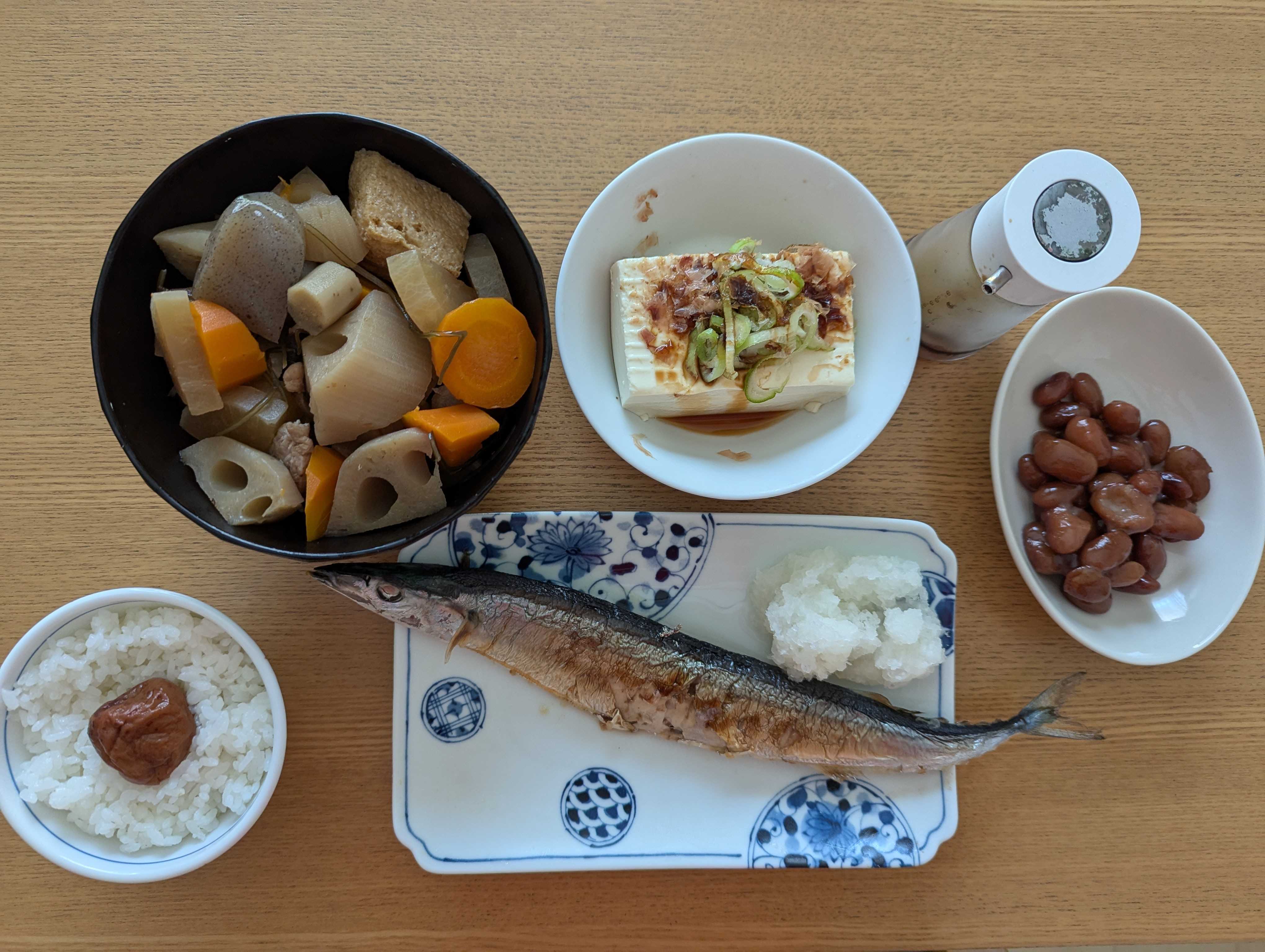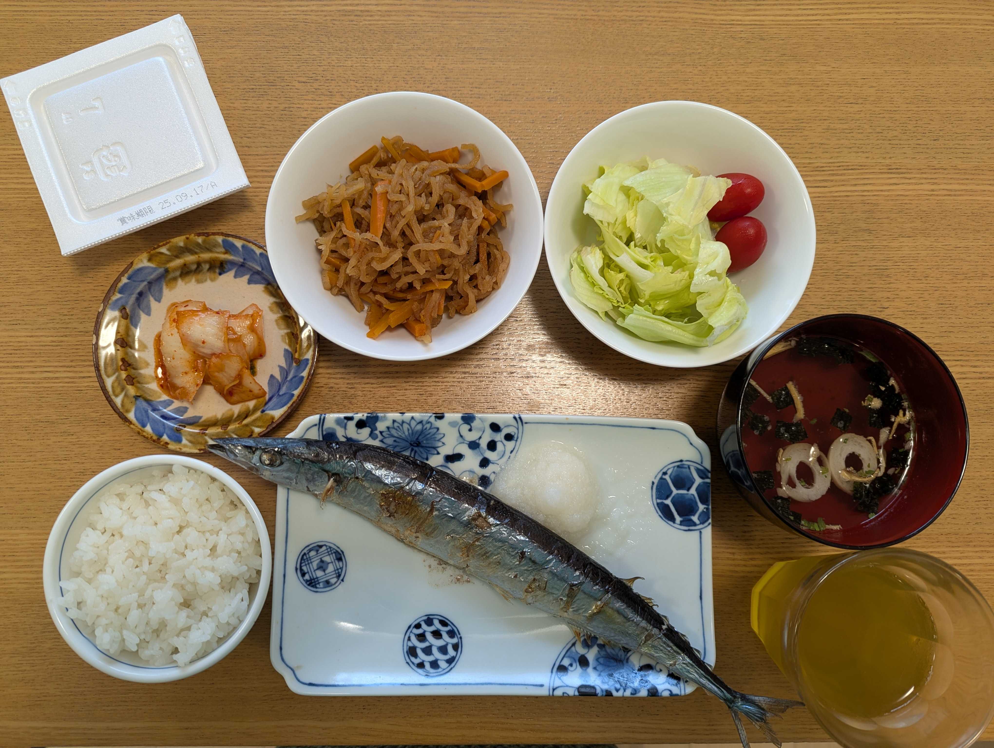 今日のランチは128円でコープで買ったサンマの塩焼き。納豆、キムチ、切り干し大根の煮物、サラダ、(秋になると飲みたくなる)永谷園の「松茸の味お吸い物」。本当は栗ご飯とか、椎茸入りの炊き込みご飯が作りたいが息子は苦手。焼き茄子も苦手なんだよね、秋茄子美味しいのに。。。アクの強い茄子を小さい頃に食べてしまってからです。秋の味覚、「菊のお浸し」食べたいなあ、何処かに売ってないかなあ。良かったら見てってくださいね♪